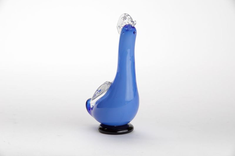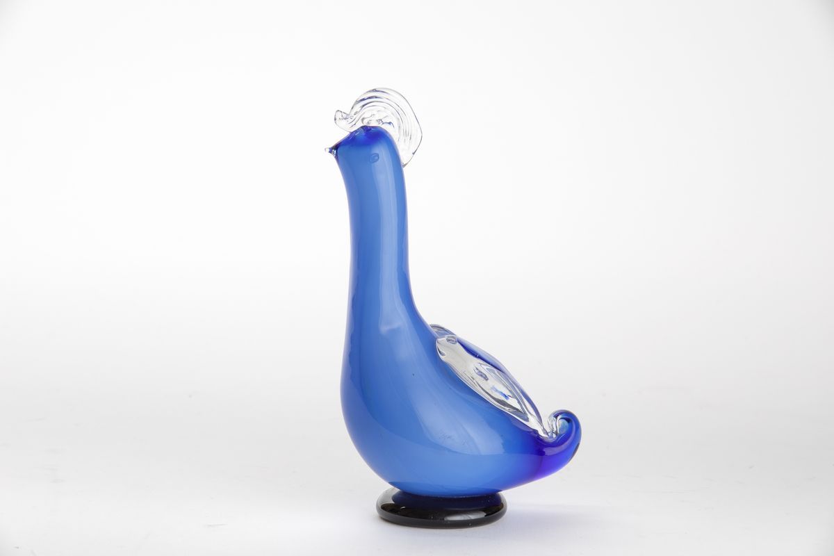 Fulvio Bianconi (1915-1996). A submerged opaline glass bird with applied wings, crest and feet. H 19cm