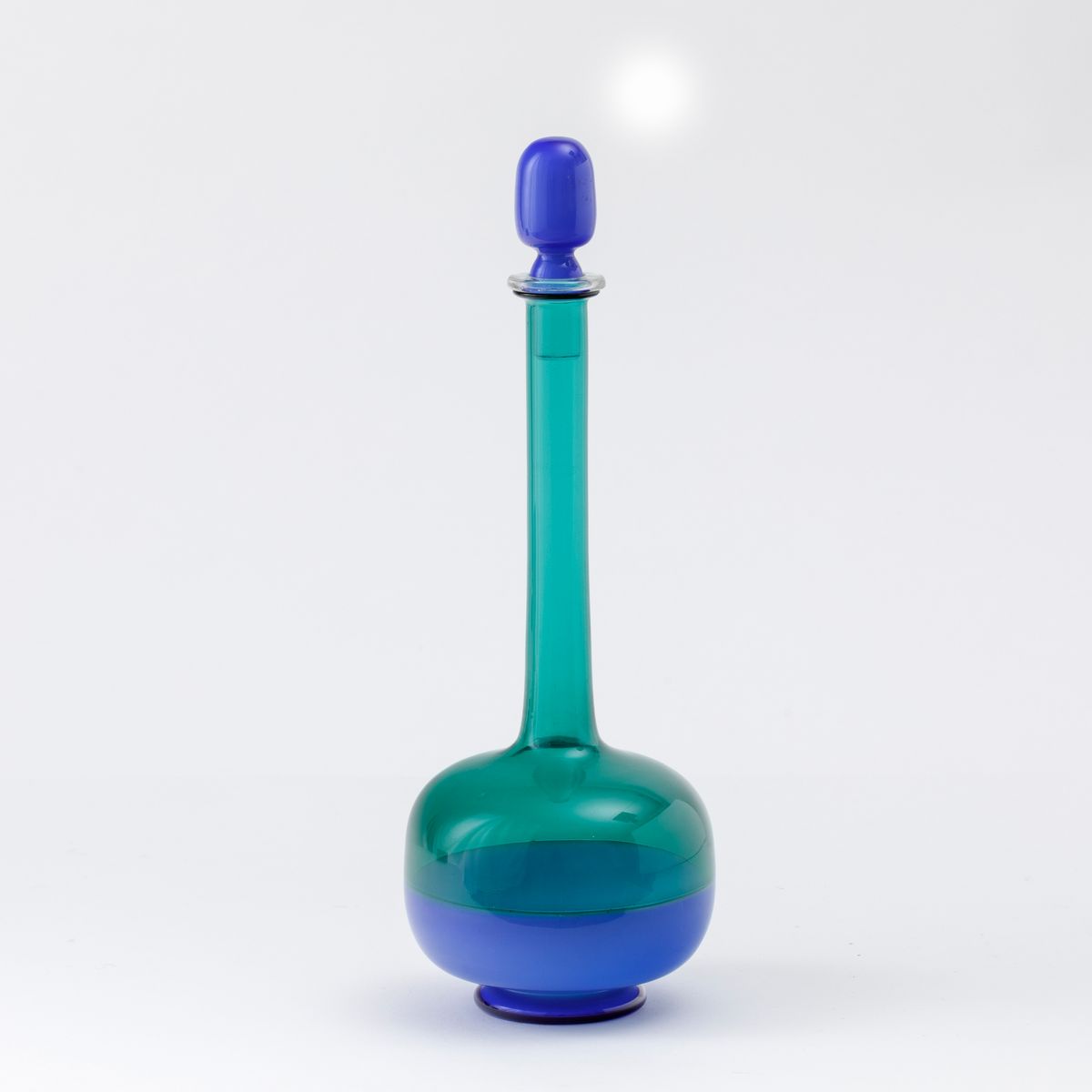 Gio Ponti (1891-1979). A blown glass bottle from the Morandiane series with a two-tone Incalmo decor. H 34cm. Acid-etched signature Venini Murano Italia.