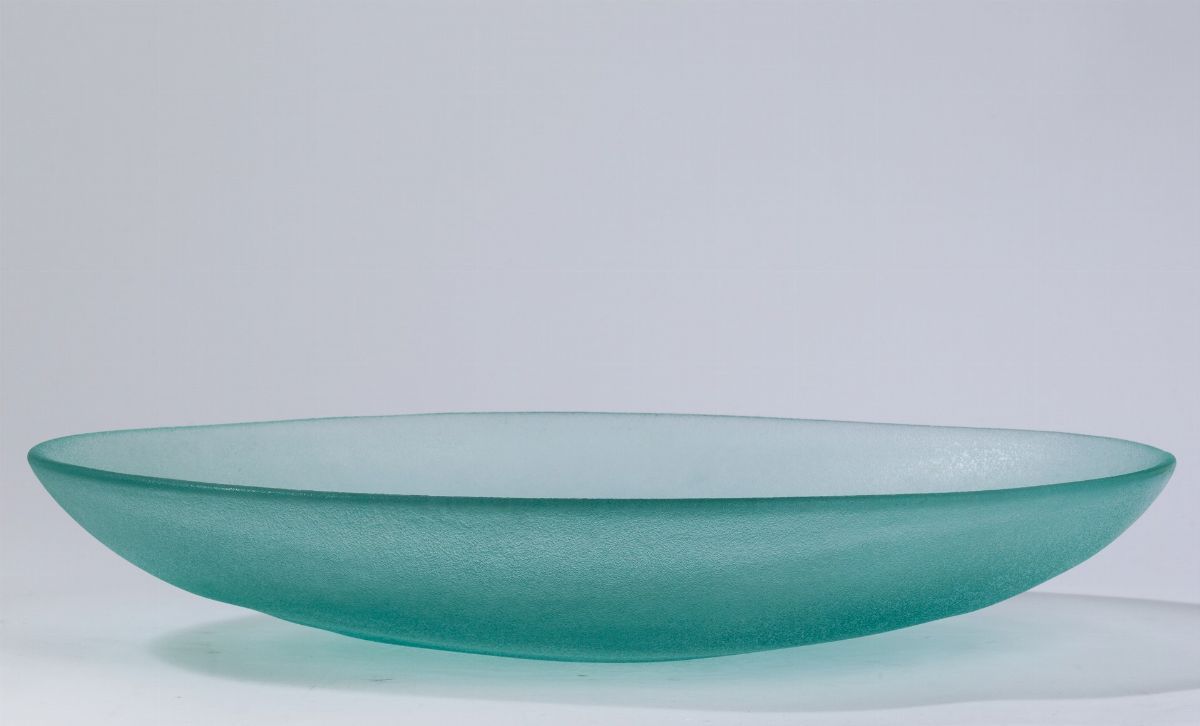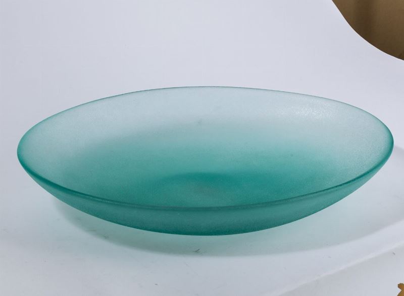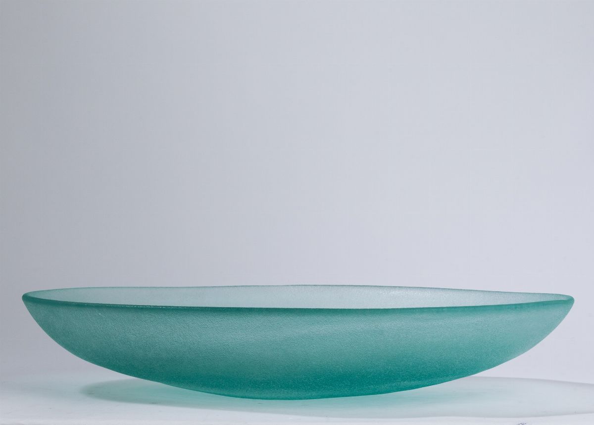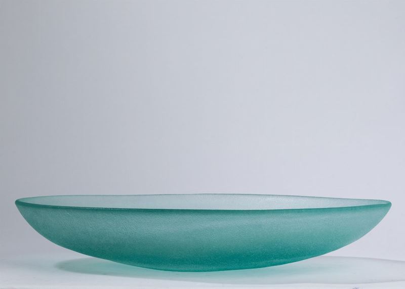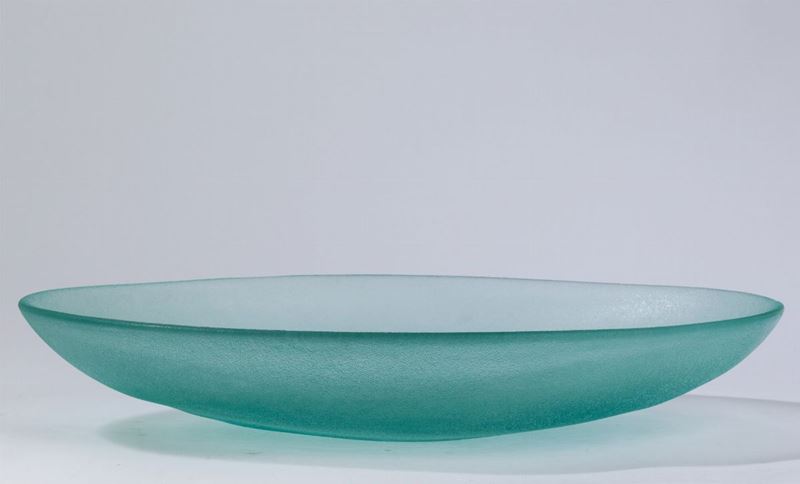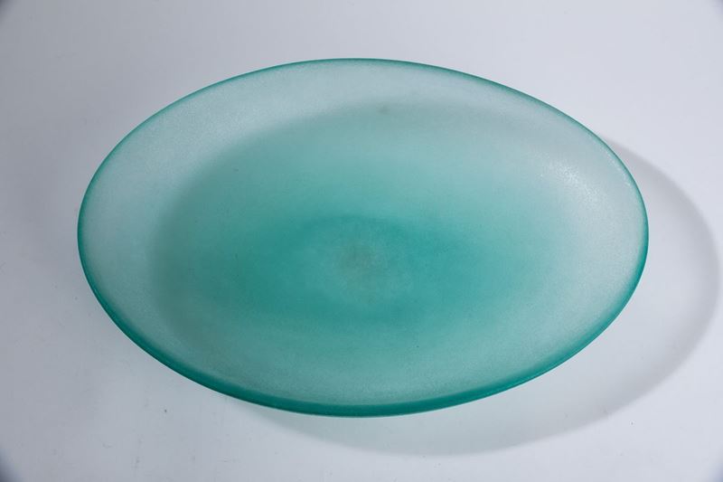 Flavio Poli (1900-1984). A large oval bowl in green corroded glass. 50x35cm, H 10cm