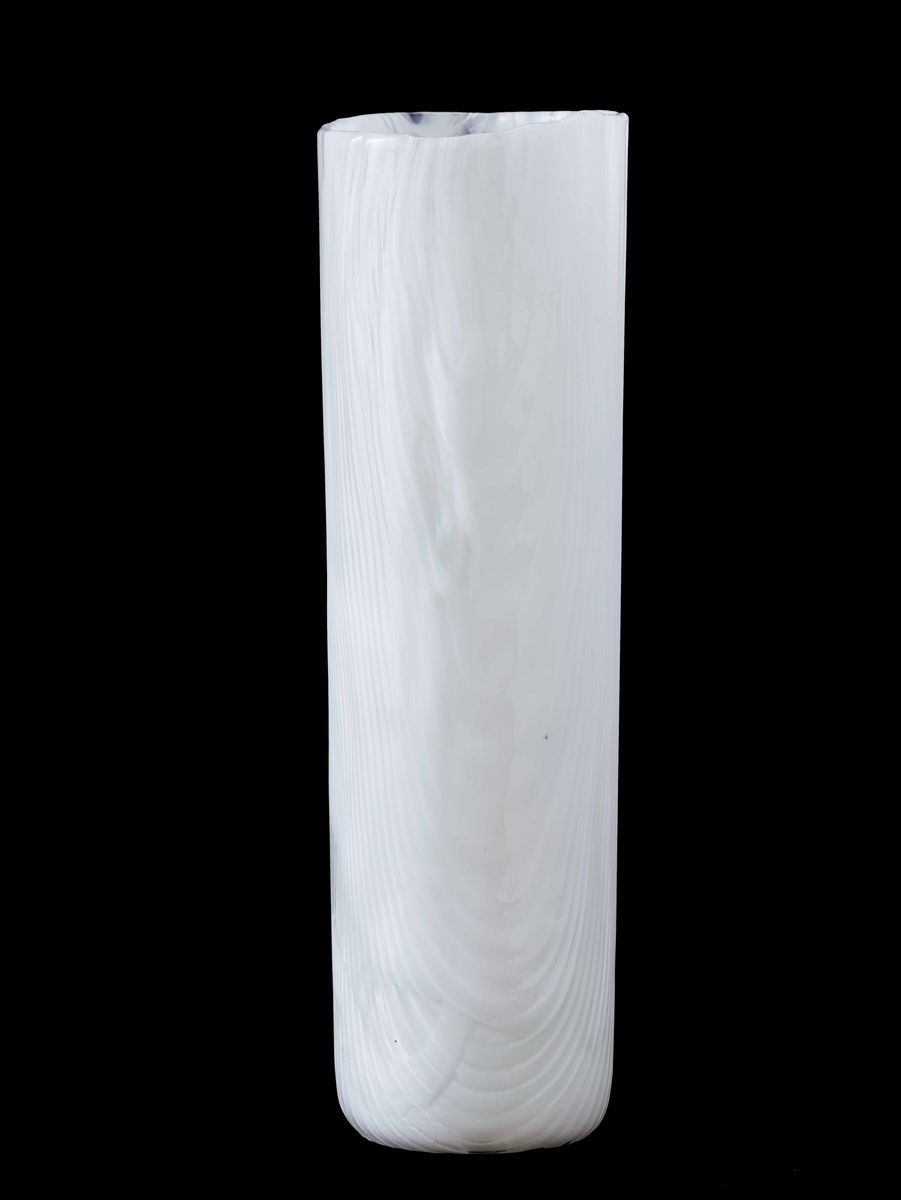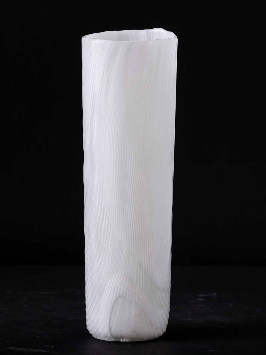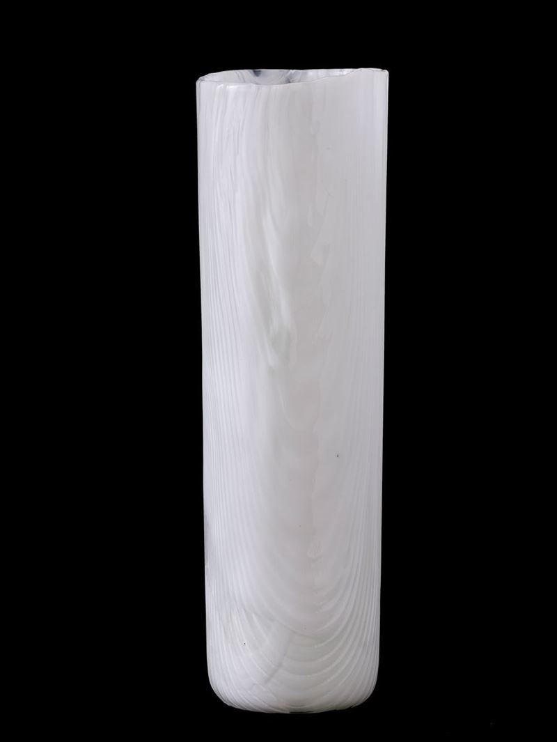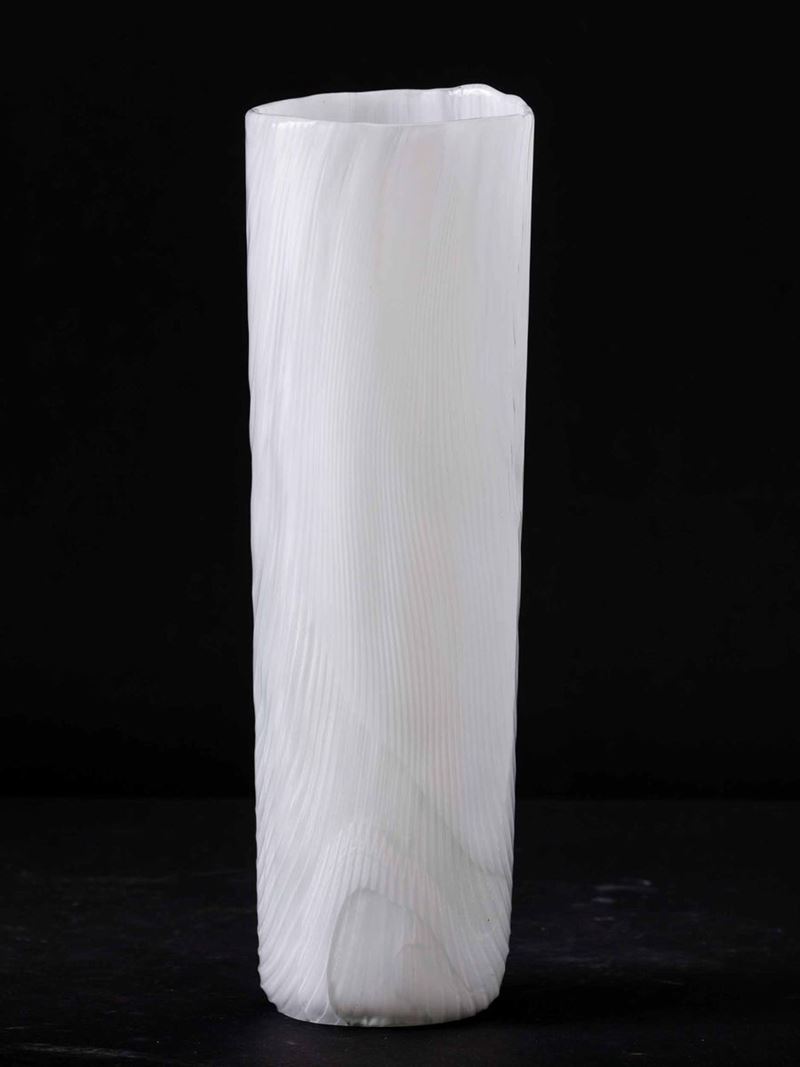 Toni Zuccheri (1937-2008). A milk-white blown glass and crystal vase from the Tronchi series, with a corrugated surface to imitate a tree's bark. H 36cm, diam 11cm. Signed Venini Italia and old label.