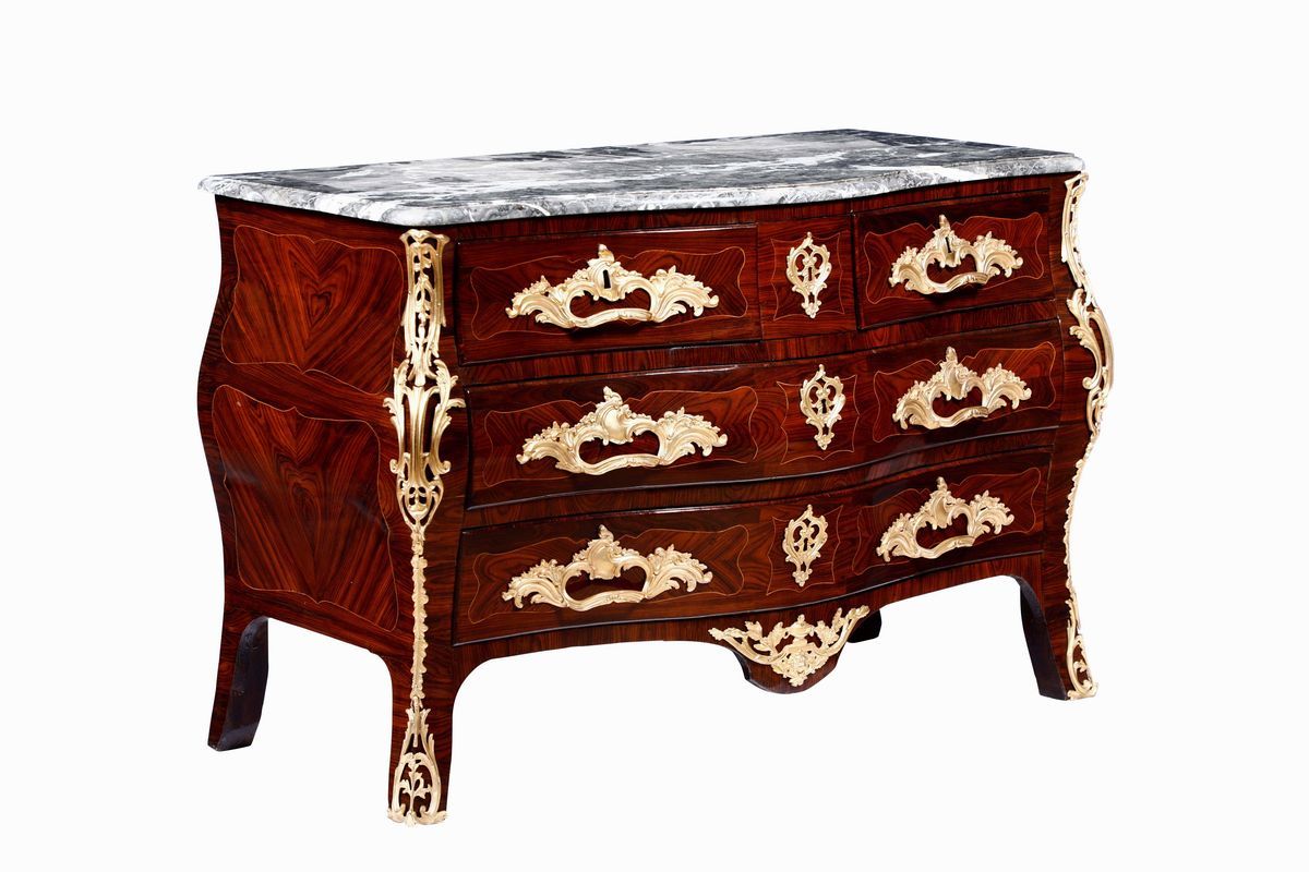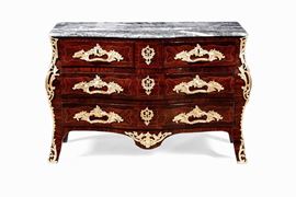 Commode Luigi XV lastronato in violetto con applicazioni di bronzi dorati, stampigliato Davaze, Francia XVIII secolo
