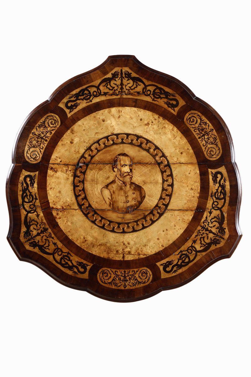 Tavolo interamente lastronato ed intarsiato, XIX-XX secolo