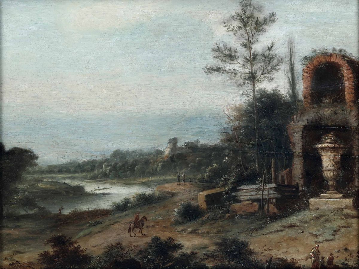 Frans de Momper (Anversa 1603-1660) Paesaggio con rovine e figure