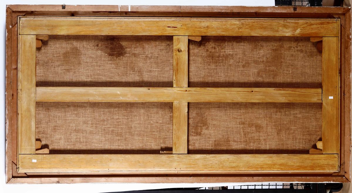coppia di dipinti a olio su tela, cm 81x170