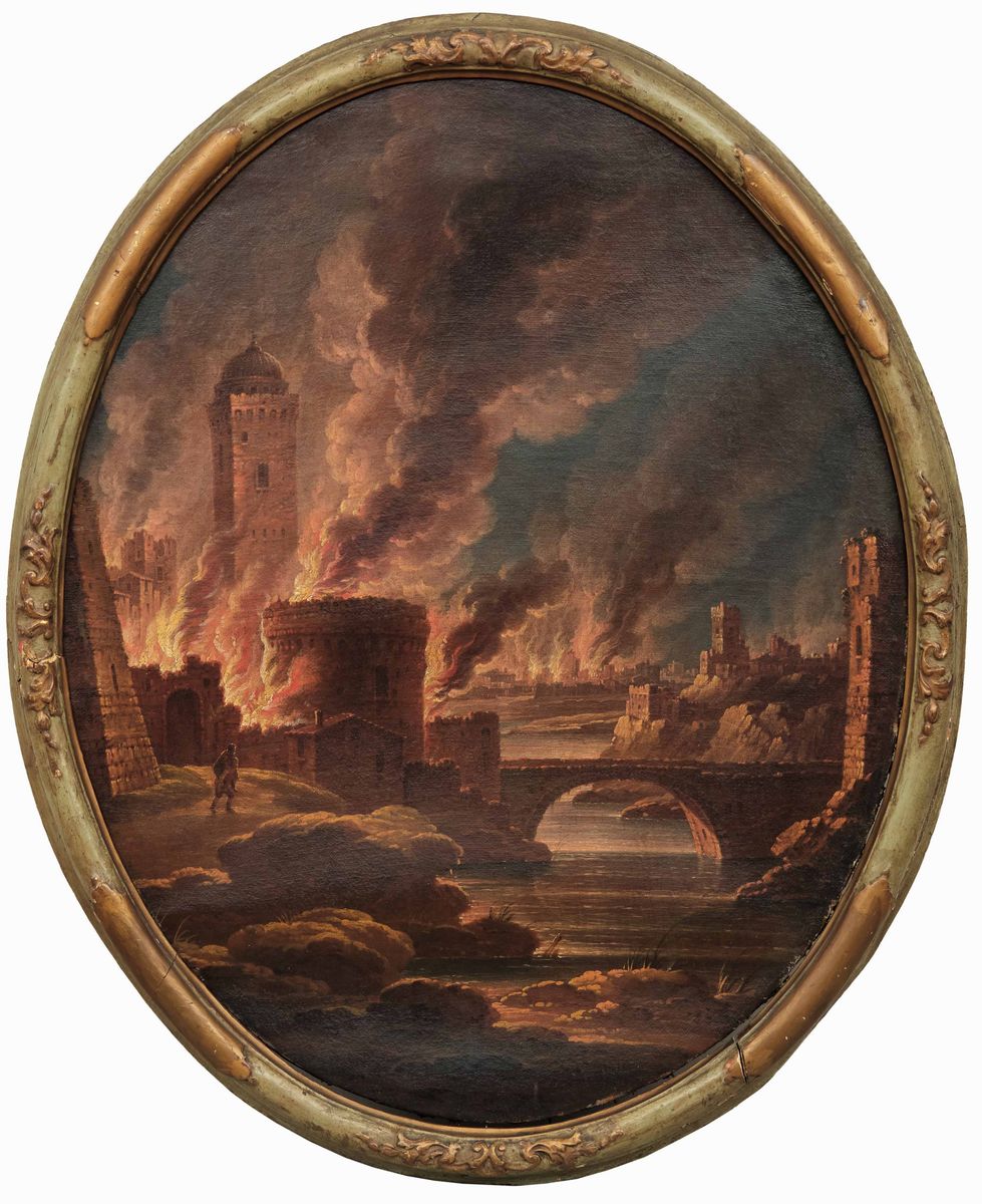 Scuola italiana del XVIII secolo Paesaggi con incendio e nevicata