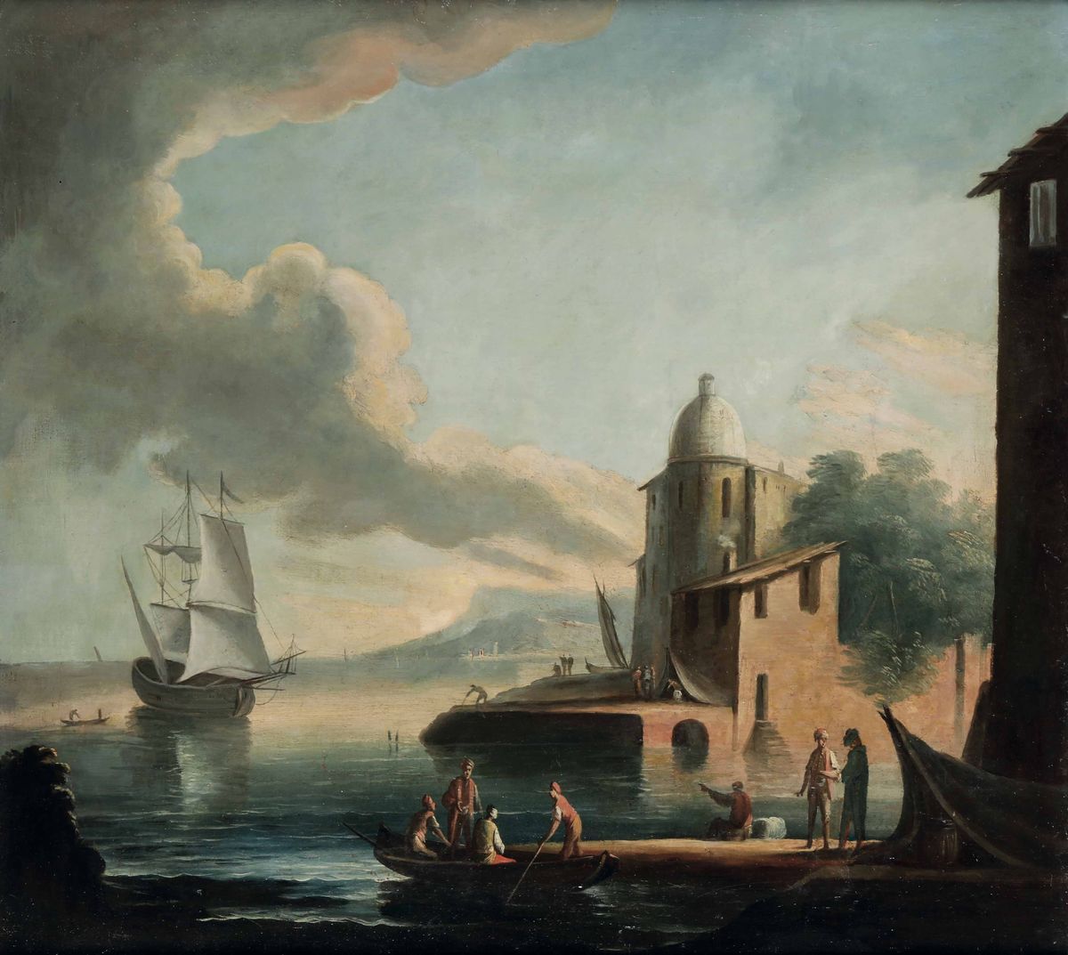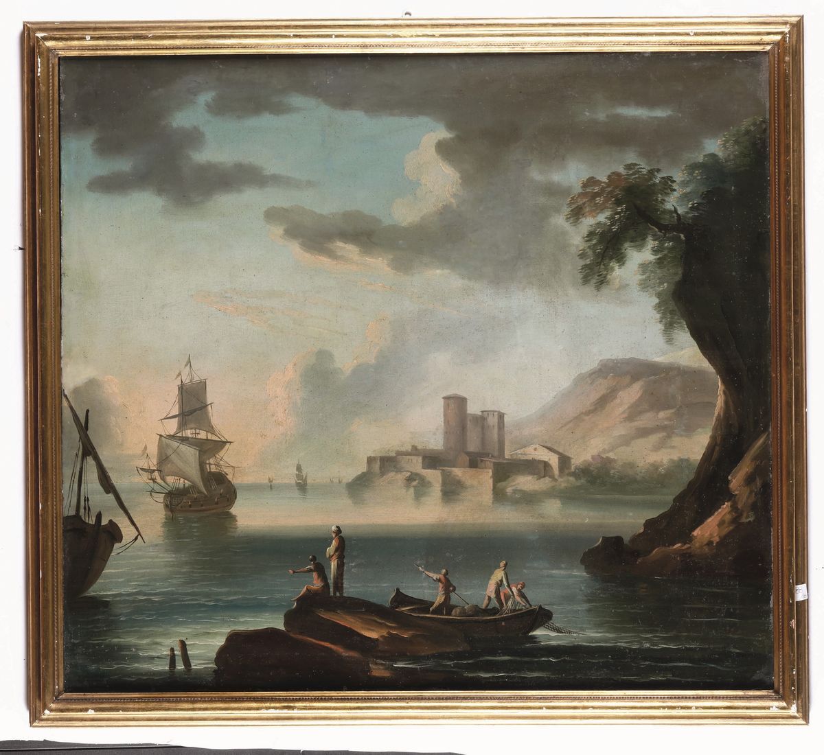 Francesco Antoniani (Milano 1700/1710 - Torino 1775), attribuito a Vedute costiere con figure e imbarcazioni