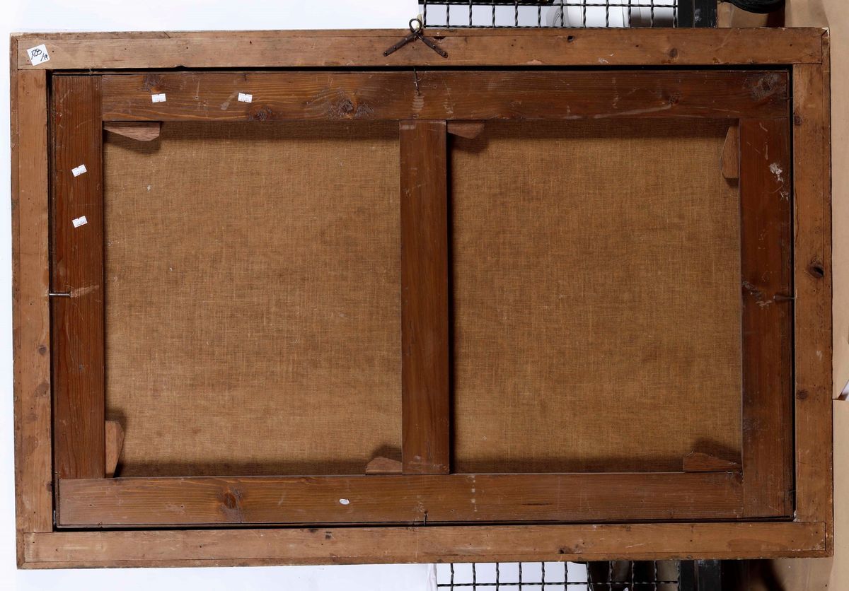 coppia di dipinti a olio su tela, cm 72x117