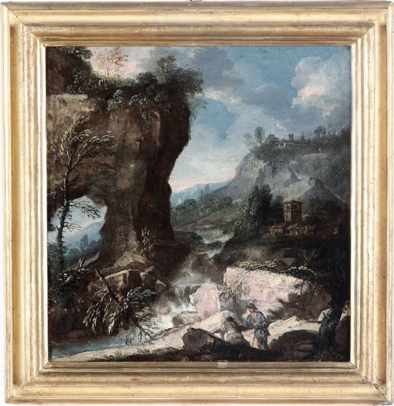 Scuola veneta del XVIII secolo Paesaggi con contadini e viandanti