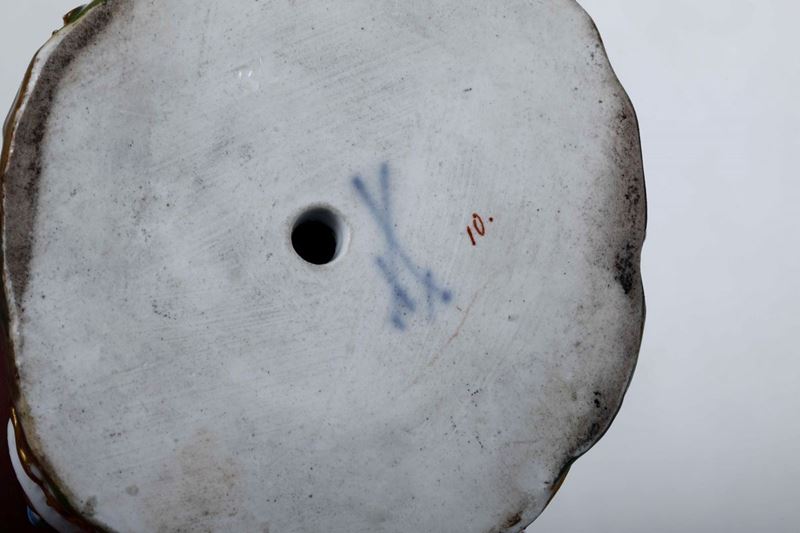 Porcellana policroma e dorata. Marca: spade in blu. Altezza cm 17,3. Conservazione: ottima