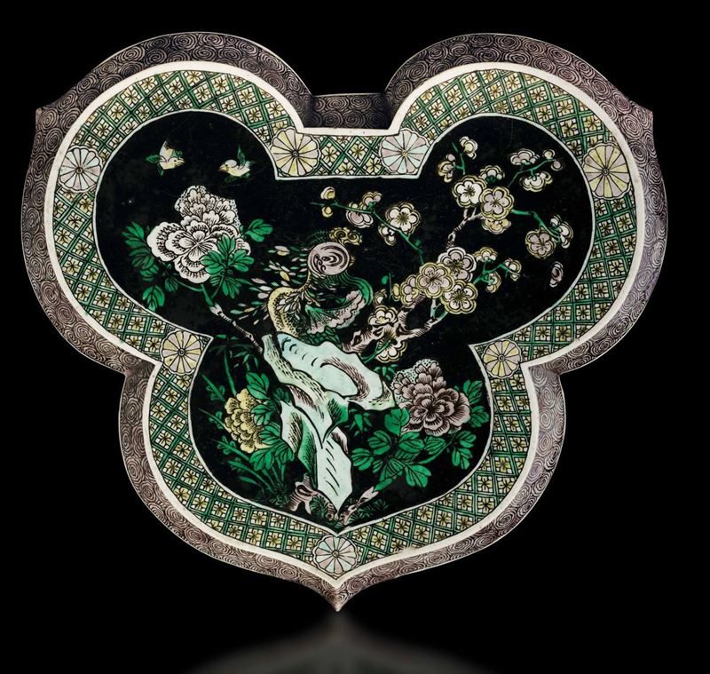 Kangxi period (1662-1722). Famille Noire porcelain. 10x21x23cm