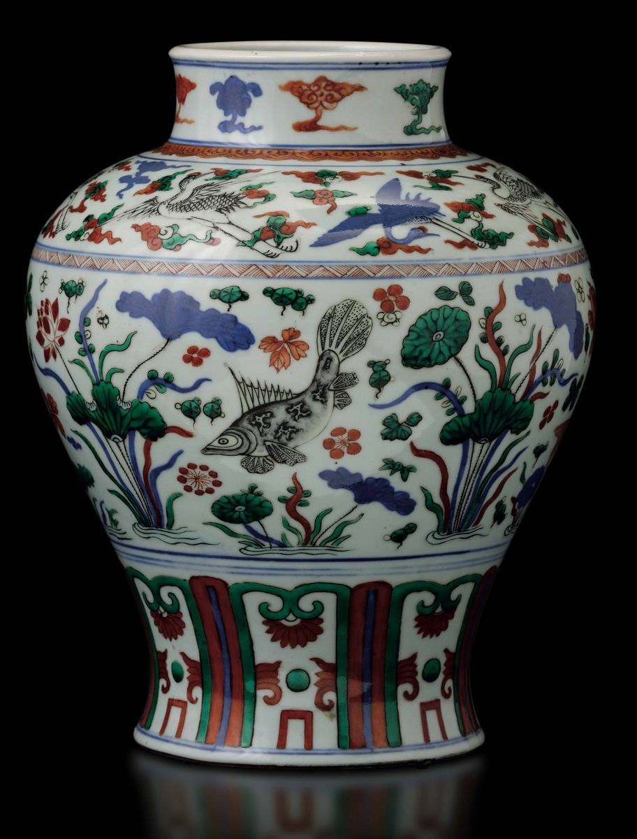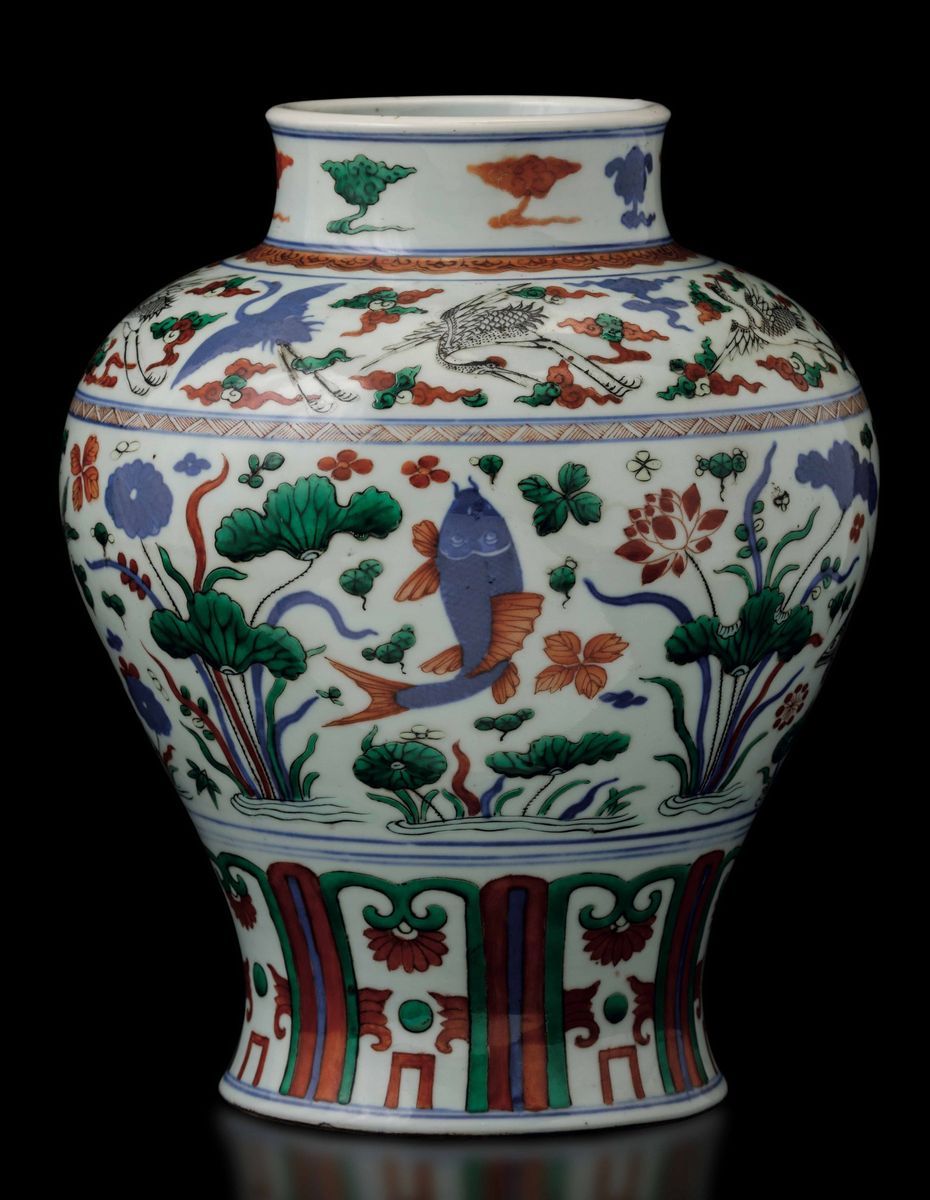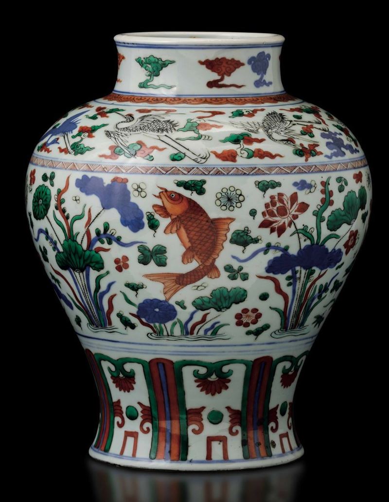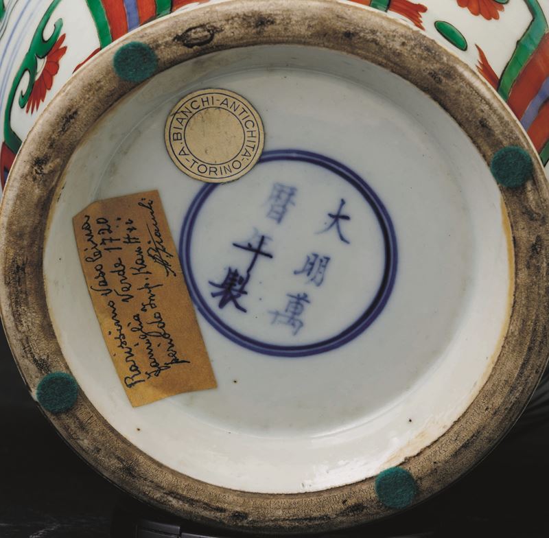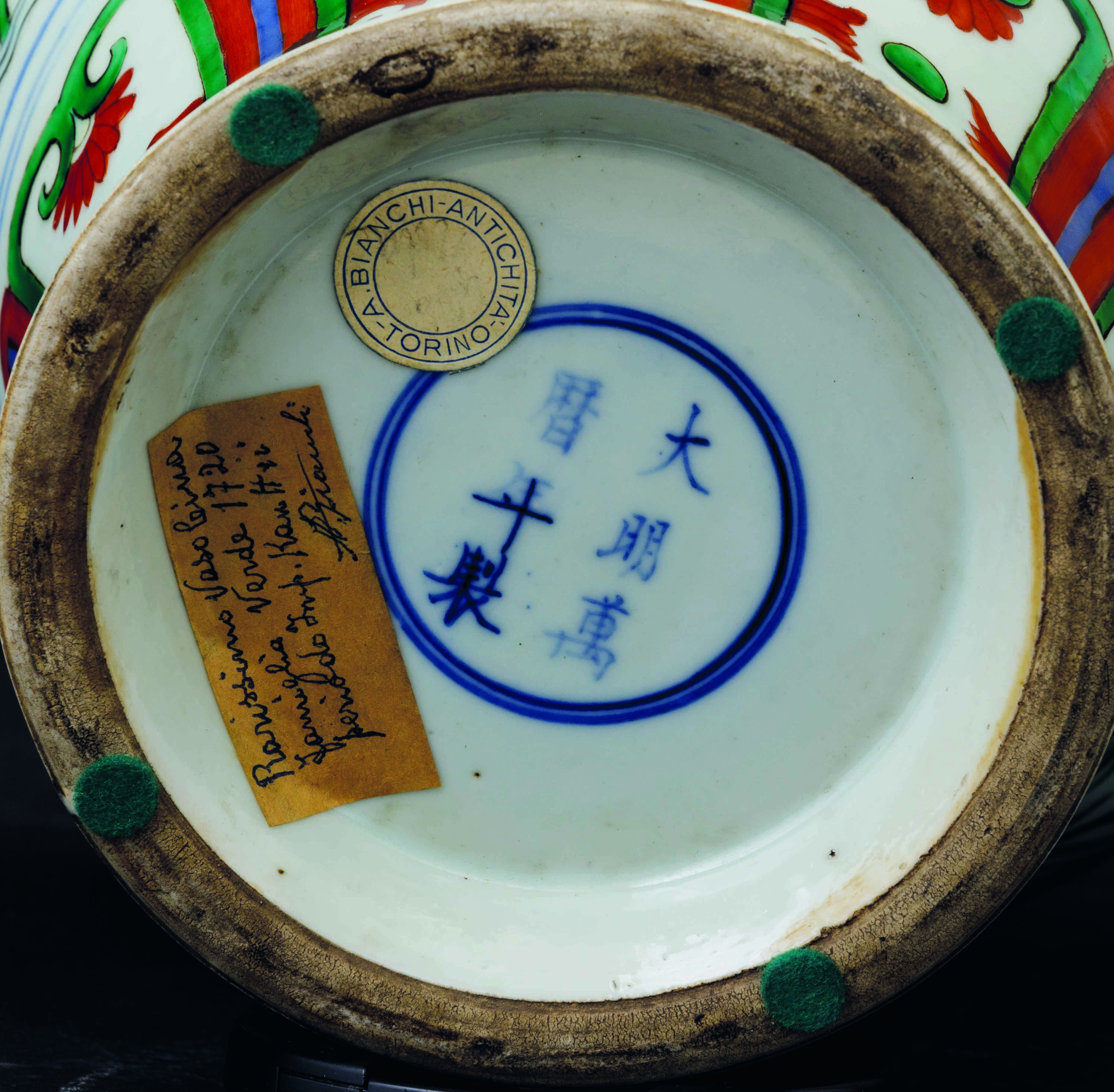 1800s. Famille Verte porcelain. Apocryphal Wanli mark. H 28cm