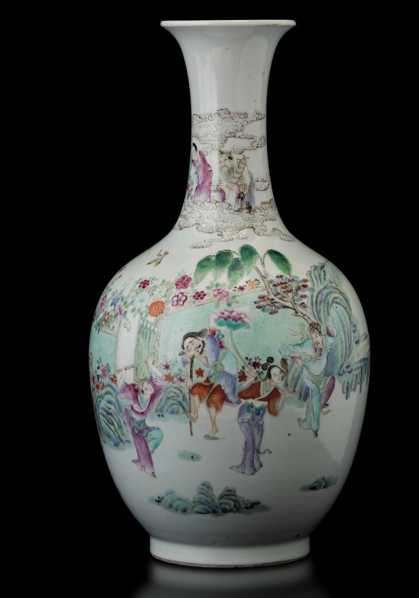 1800s. Famille Rose porcelain. Apocryphal Qianlong mark. H 33cm