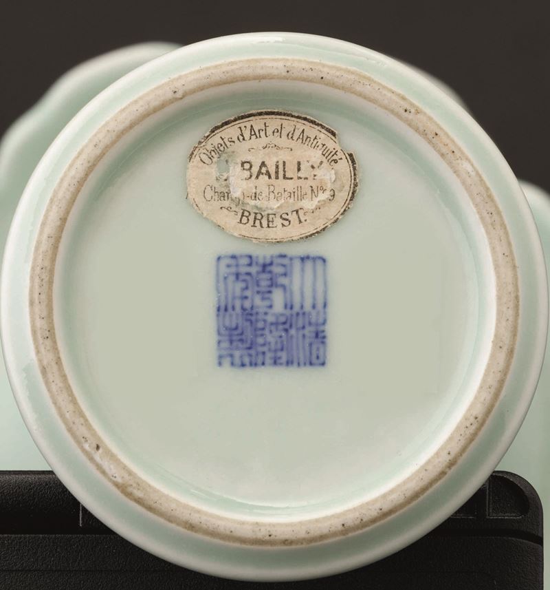 1800s. Celadon porcelain. Apocryphal Qianlong mark. H 24cm