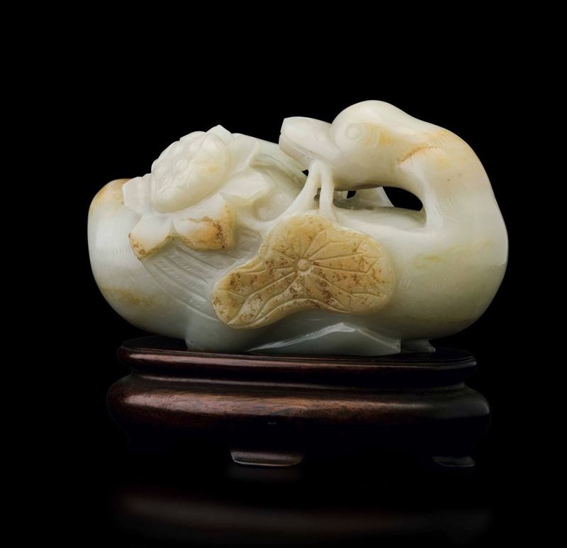 Qianlong period (1736-1796). White jade and russet. 6x11.5cm