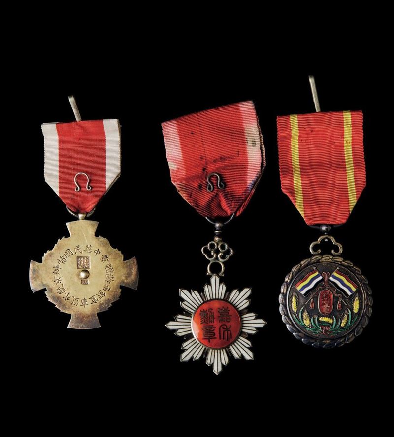 Three bronze and enamel medals, China, 18/1900s