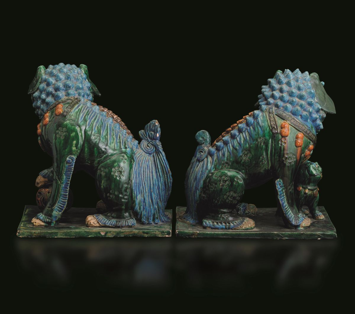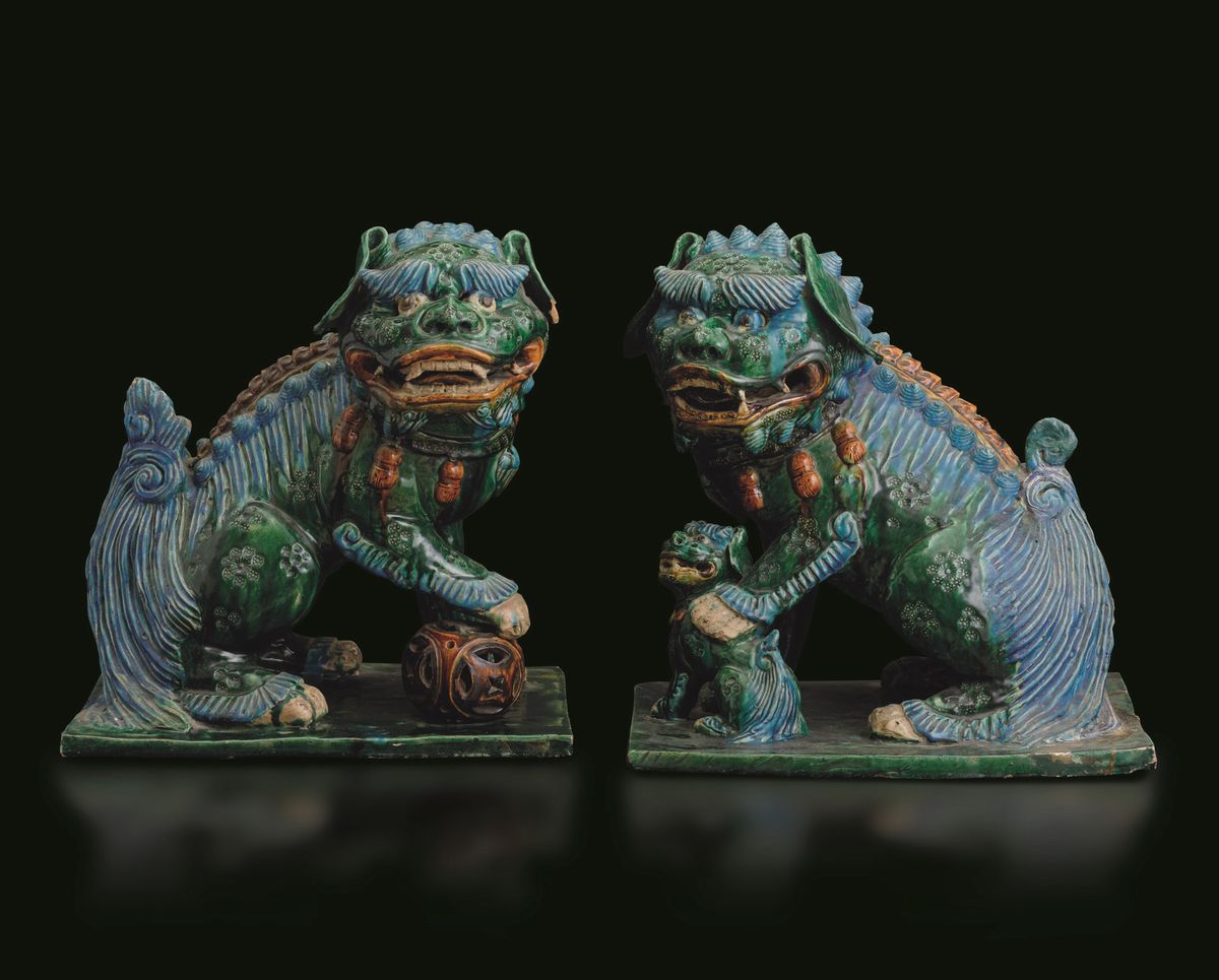 Two terracotta Pho dogs, China, Ming Dynasty