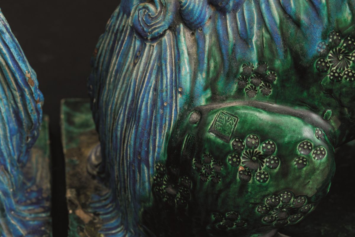 1500s. Glazed terracotta with Sancai enamels. Marked. H 44cm