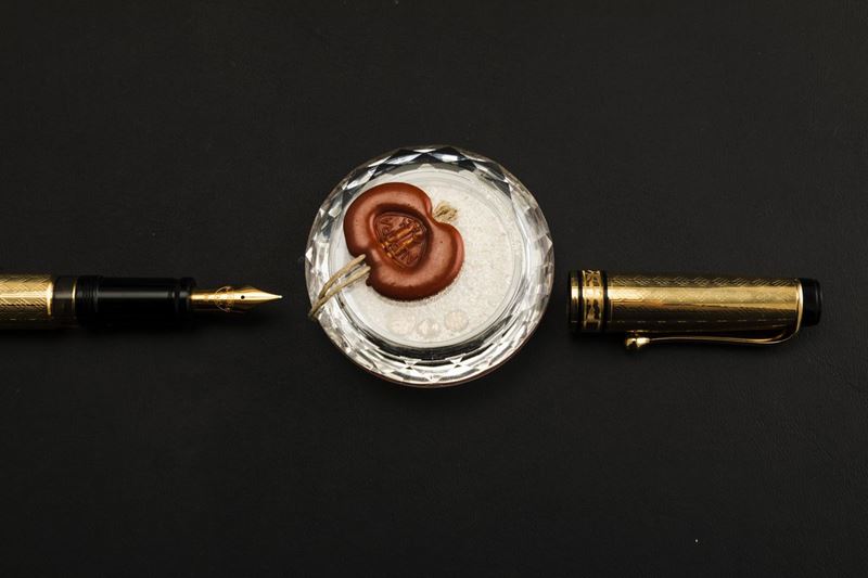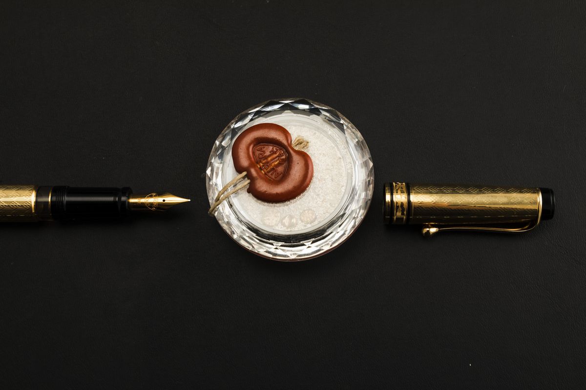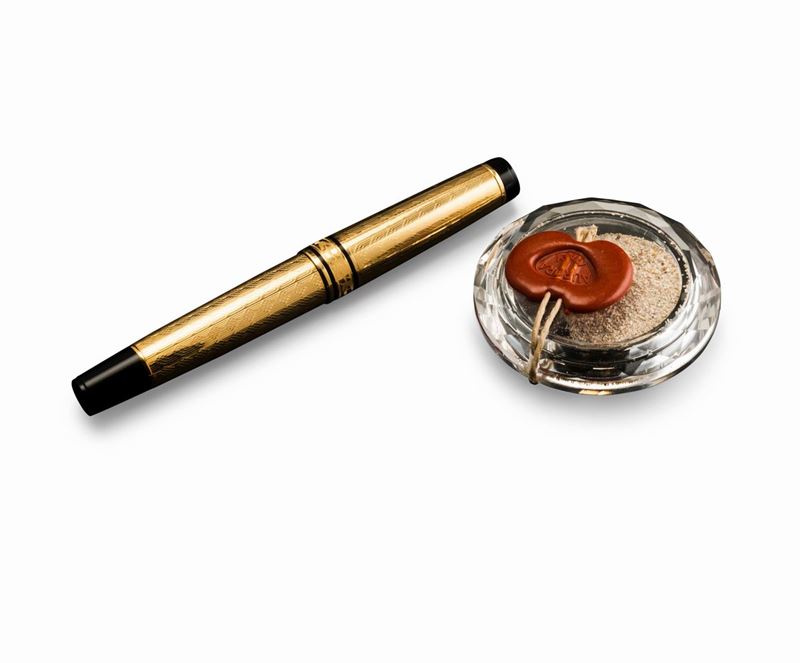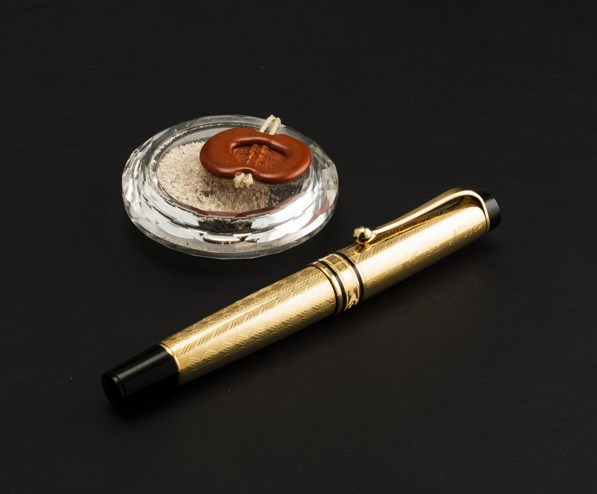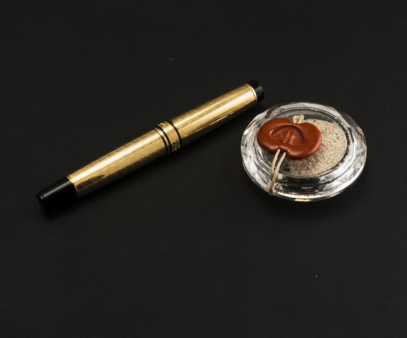 Questo oggetto di scrittura è rivestito in oro massiccio cesellato a mano da abili maestri orafi con pennino in oro.