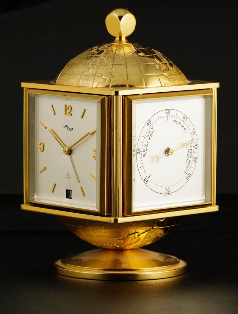 IMHOF - Pendola da tavolo con stazione meteorologica a 8 giorni di carica con sveglia, indicazioni di barometro, termometro e igrometro.