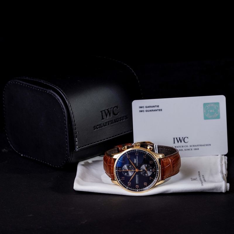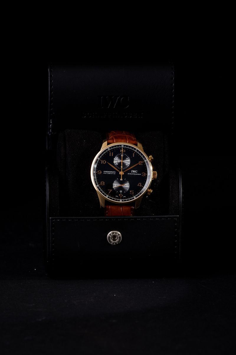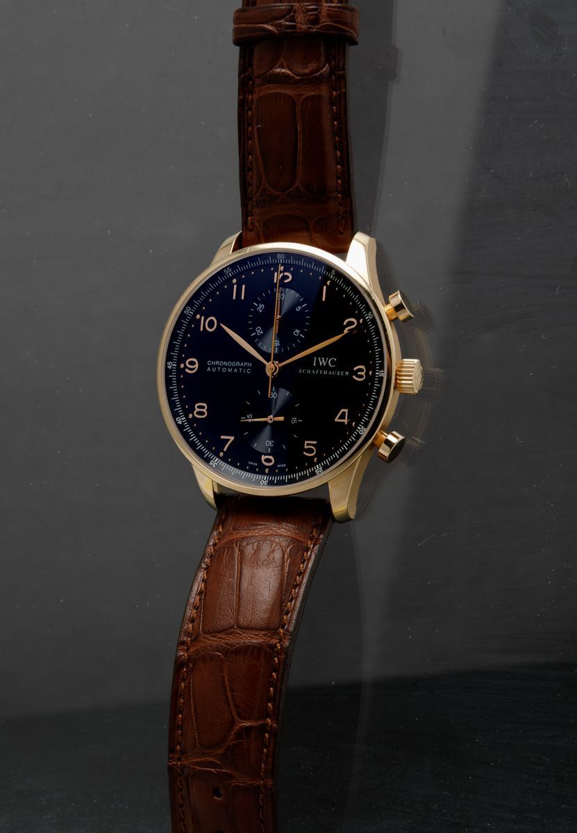 IWC - Portoguese Chronograph, oro rosa, 40 mm, 2005. Condizioni da fondo di magazzino con garanzia e scatola da viaggio.