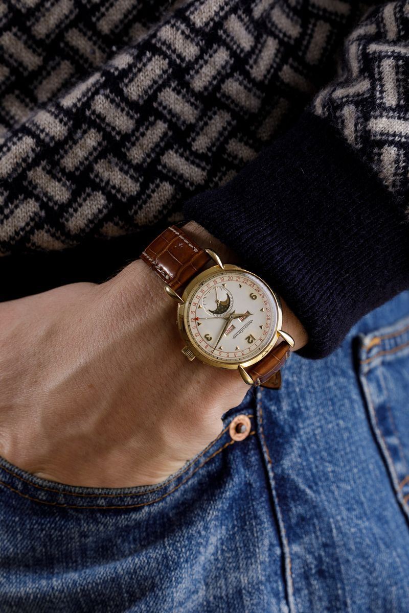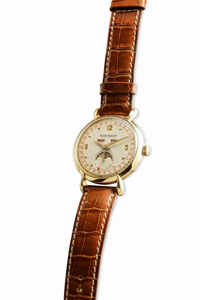 JAEGER LECOULTRE - Triplo calendario con fasi lunari in oro 18k, anni '40 in eccellenti condizioni.