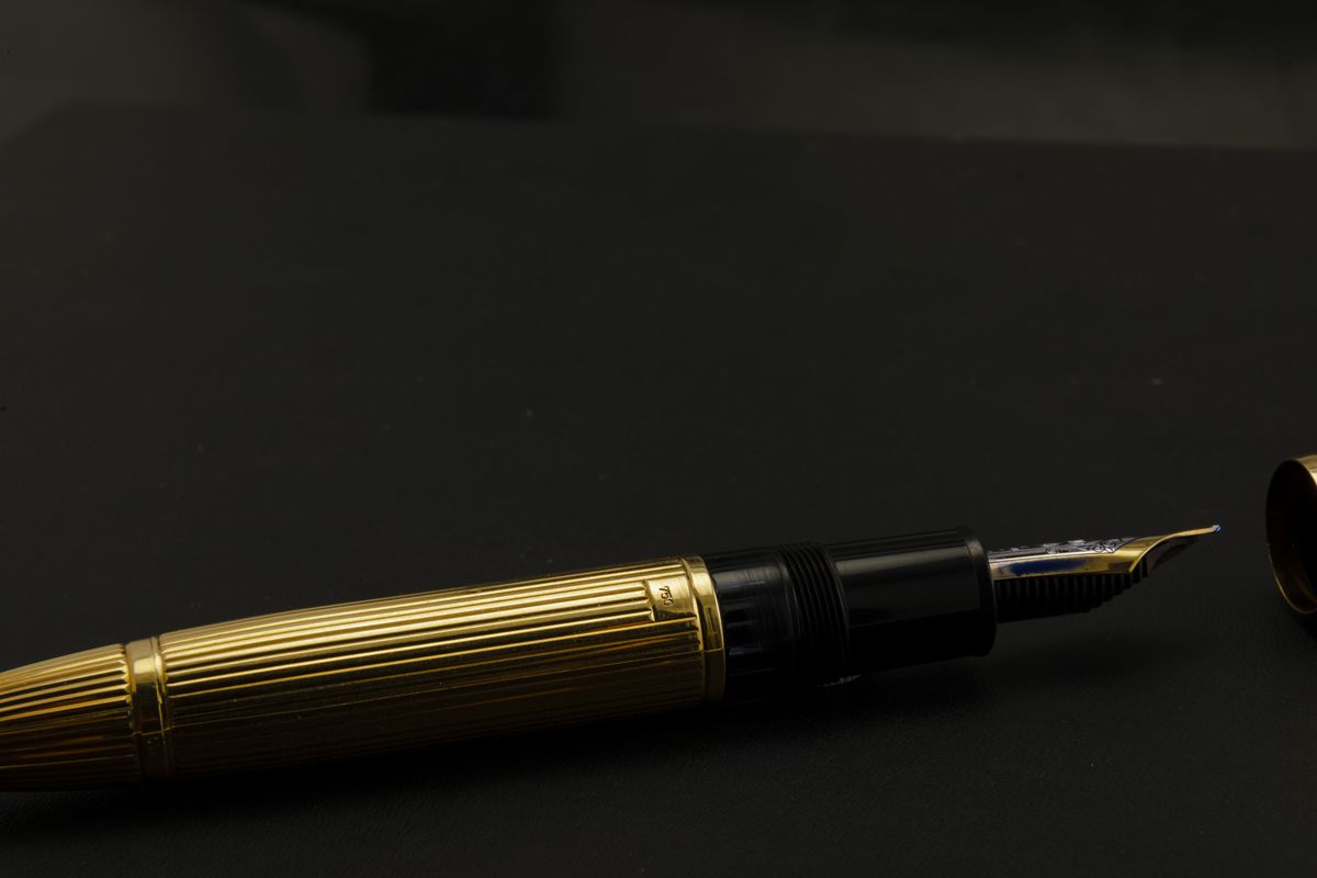 L’elegante esecuzione con cesellatura a godron in oro massiccio rende questo oggetto non solo un gioiello di scrittura, ma un raffinato status symbol.