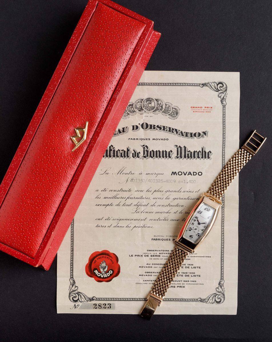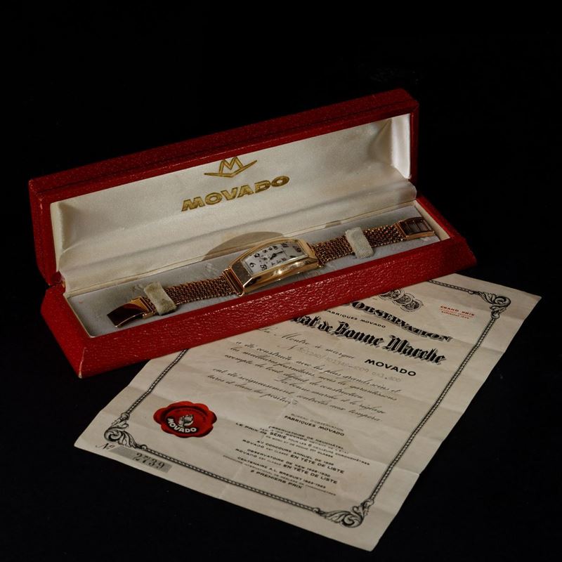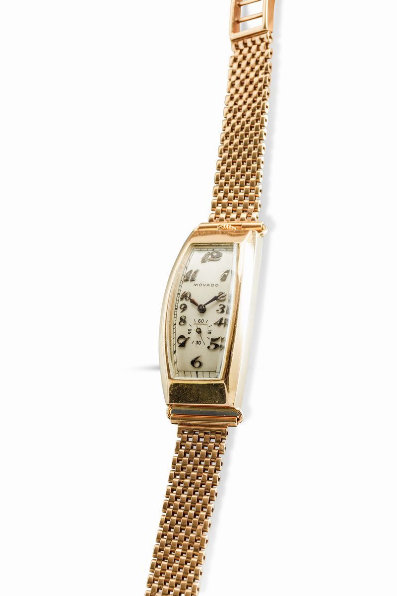 MOVADO - Polyplan con cassa curvex in oro rosa 18k, secondi in basso. Accompagnato da astuccio originale e certificato dell'epoca