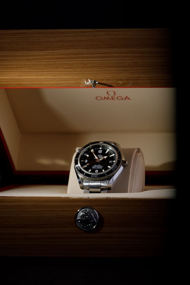 OMEGA - Seamaster Planet Ocean Co-Axial automatico in acciaio con scatola in legno originale