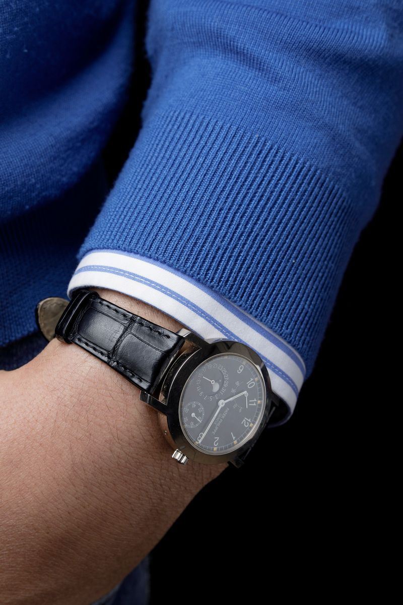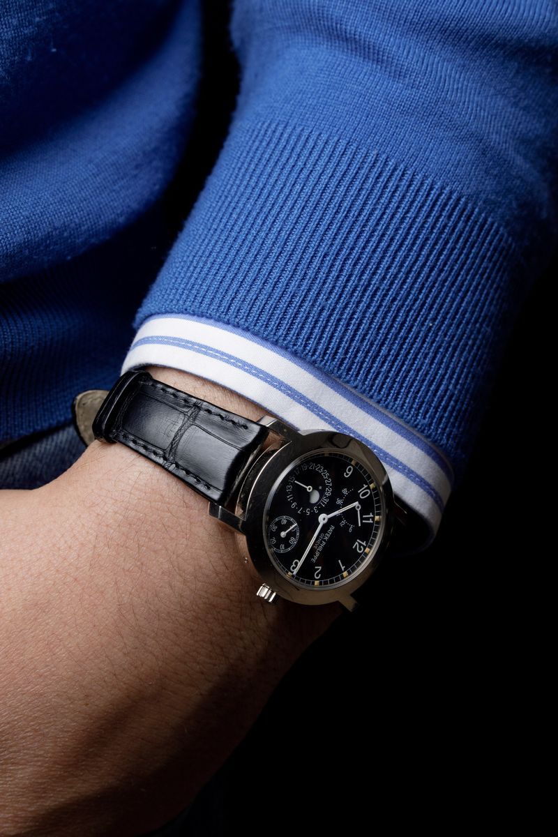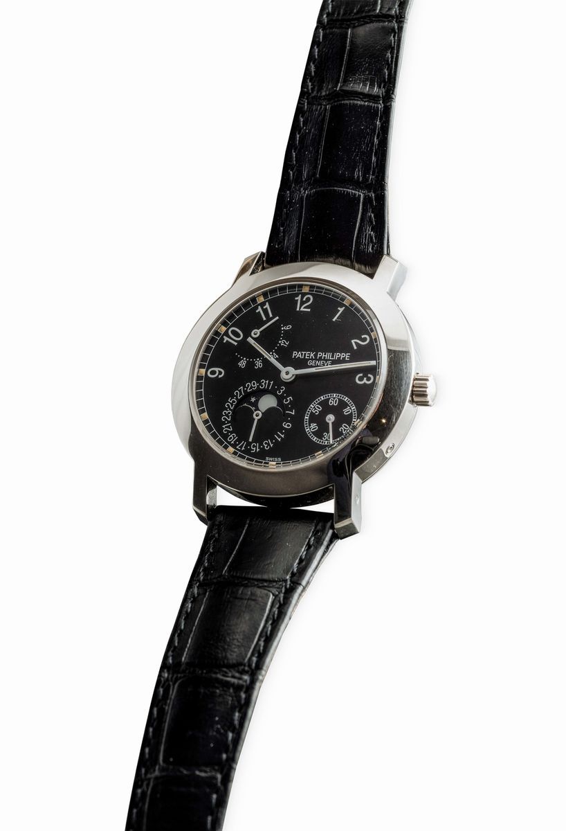 Reference 5055 was produced from 1998 to 2004 in yellow gold, white gold, rose gold and platinum. The configuration of this model in white gold with black dial gives to the watch an elegant and sporty spirit.