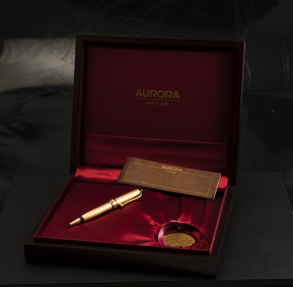 Questo oggetto di scrittura è rivestito in oro massiccio cesellato a mano da abili maestri orafi con pennino in oro.