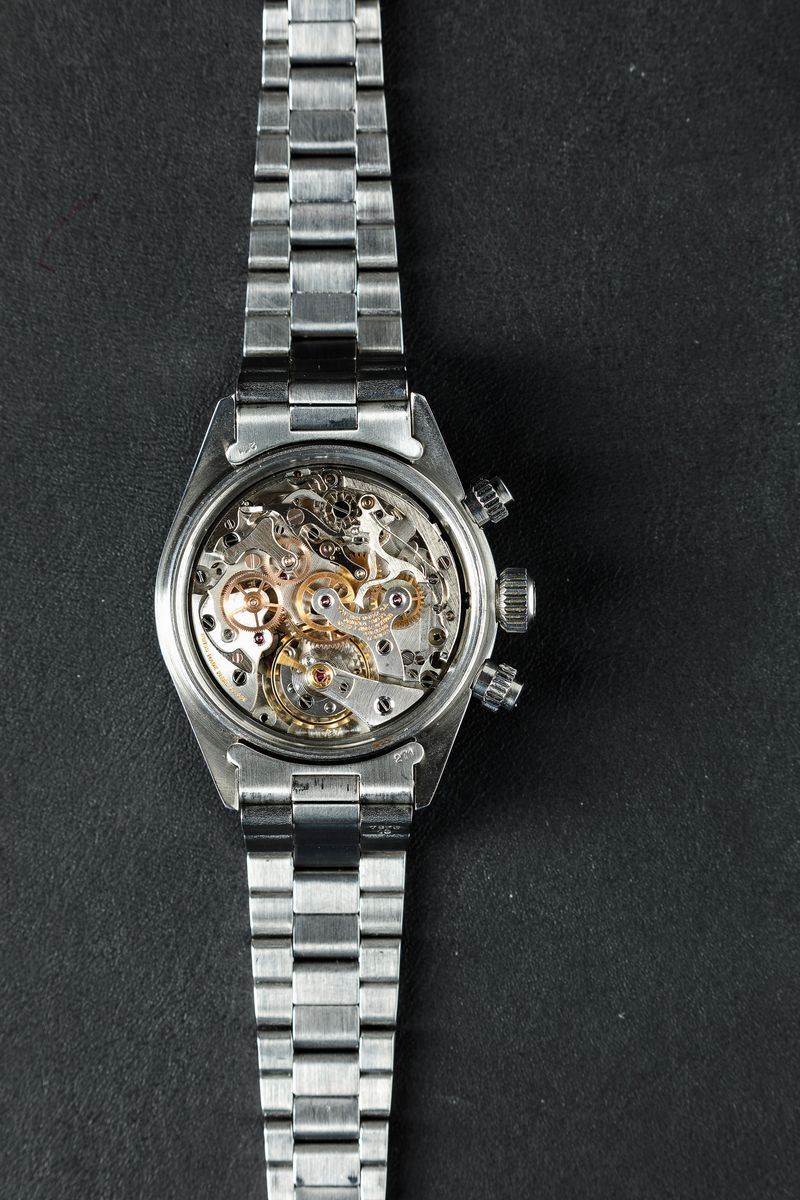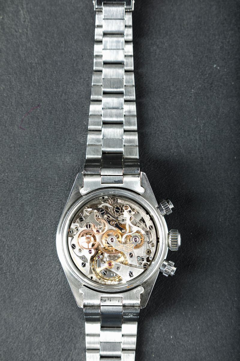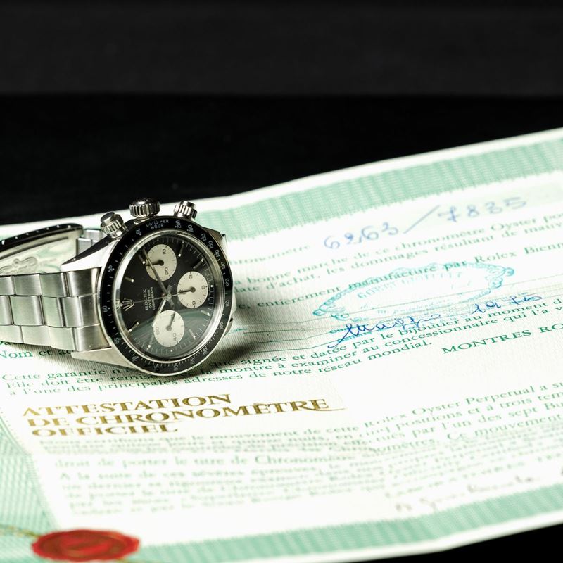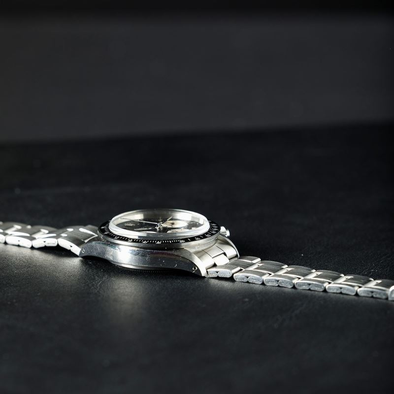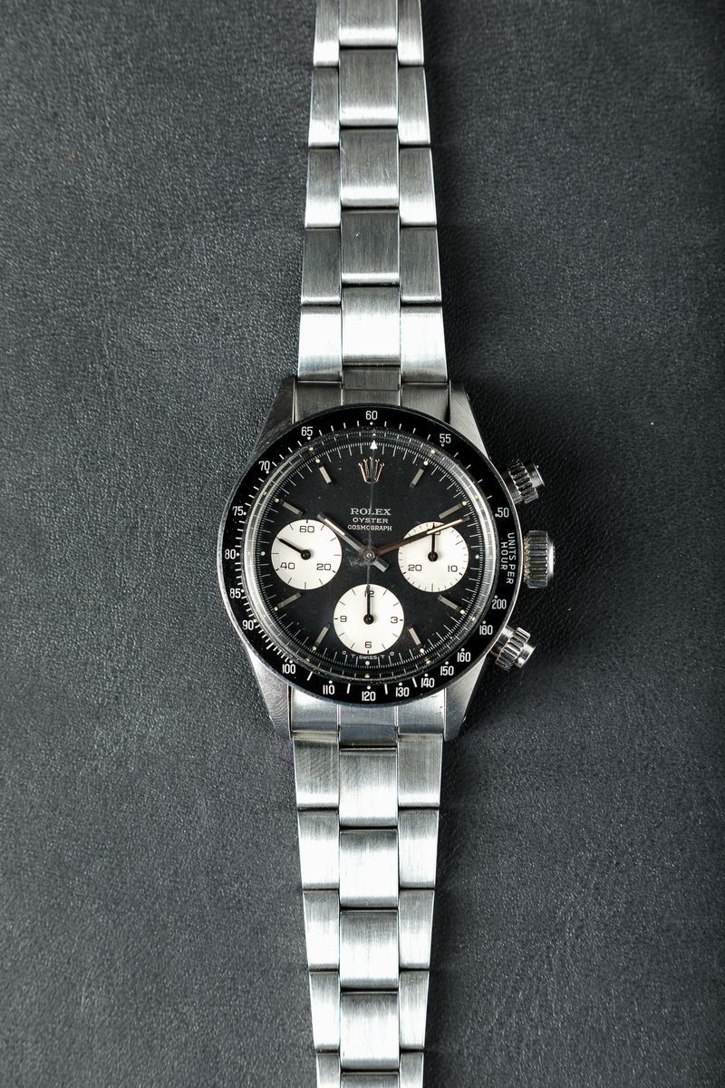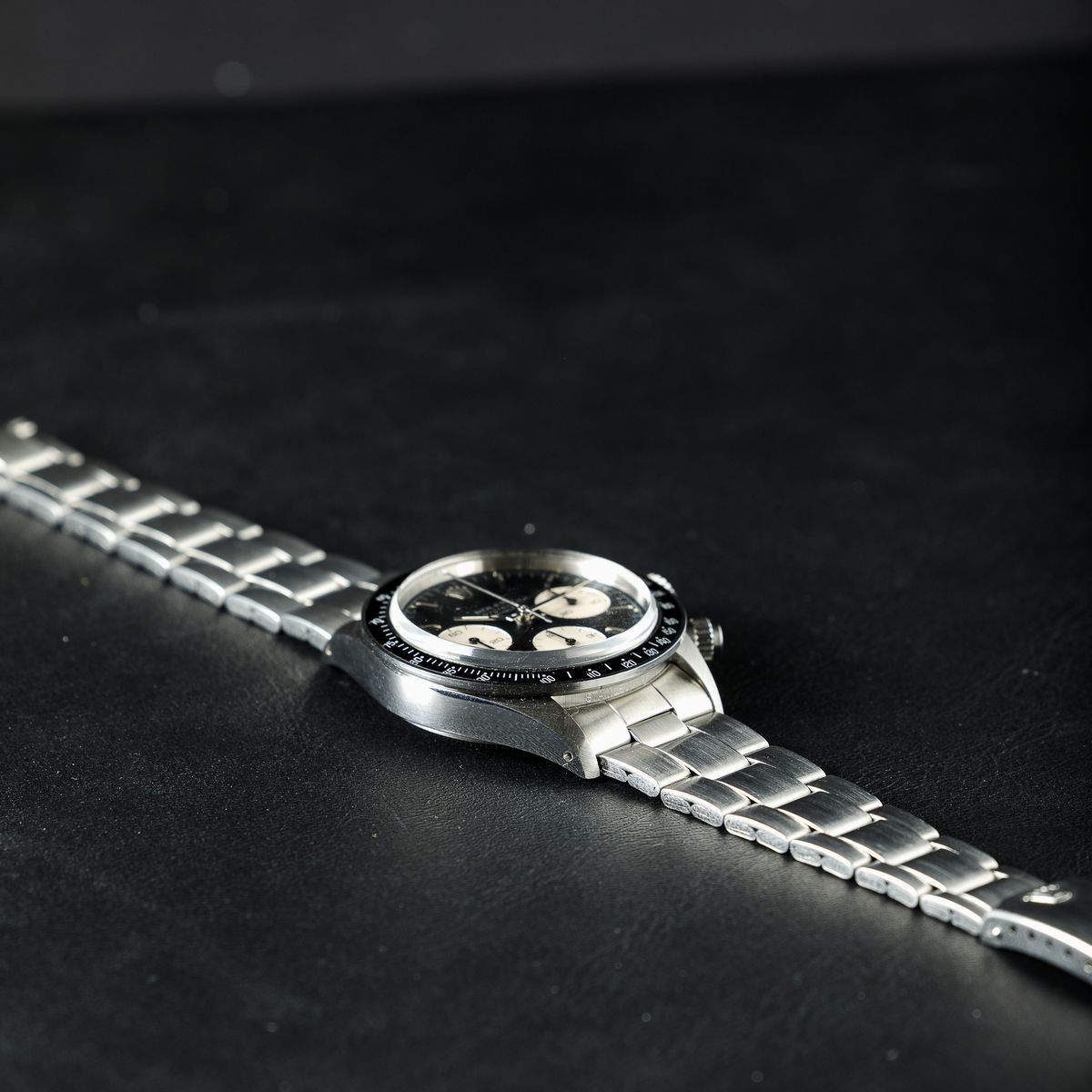 La referenza 6263, contemporaneamente alla referenza 6265, è stata in produzione dalla fine degli anni ’60 fino al 1987. Per molti collezionisti questa configurazione, con inserto della ghiera nero e tasti a vite, è la più iconica della serie Daytona. La rarità di questo orologio è arricchita dalla presenza di un quadrante “Sigma” che segnala la presenza di indici d’oro bianco. L’orologio conservato in condizioni di “fondo di magazzino”, non è mai apparso prima in asta in quanto è stato custodito dal primo proprietario dal 1975 e indossato in rarissime occasioni. Ad accompagnare l’orologio ci sono scatola originale e garanzia, dettaglio estremamente raro per orologi di quest’epoca. - - - Reference 6263, was in production from the late 1960s until 1987. For many collectors this configuration, with black bezel insert and screw-down buttons, is the most iconic of the Daytona series. The rarity of this watch is enhanced by the presence of a “Sigma” dial denoting the markers are in white gold. The watch, preserved in new old stock condition, has never appeared before at auction as it has been kept by the first owner since 1975 and worn on very rare occasions. The watch is accompanied by the original box and warranty, an extremely rare detail for watches of this era.