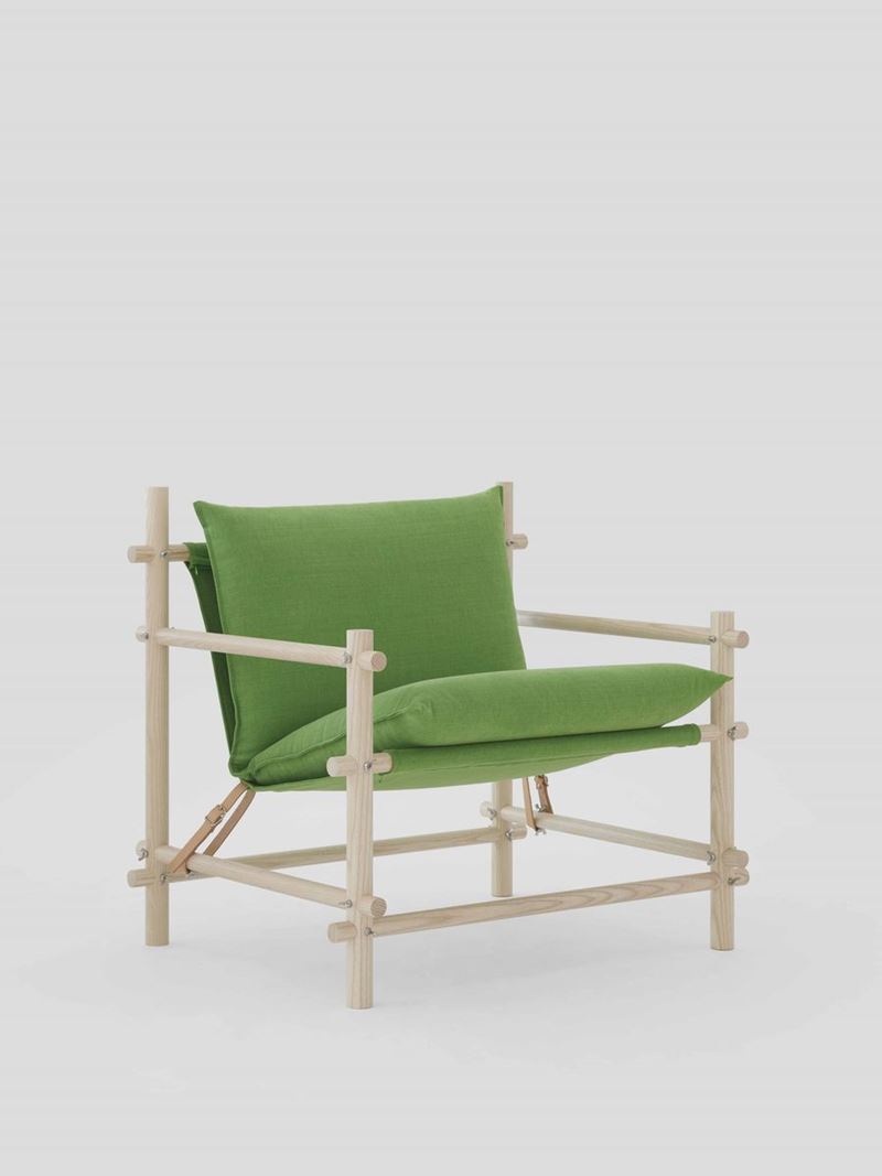 now the new chair of the farmer who’s cool- ing off, under an olive tree, looking out at the machines that work for him: a ode to the more authentic and simple Sicilian culture”. The new Manico armchair is a brightly colored indoor seat that interprets the simplicity of rural life. Characterized by its lightness and transparency, Manico is made with the minimum use of material: equipped with an exposed ash wood structure and a fabric seat, it is completed by cushions that make it extremely accommodating.