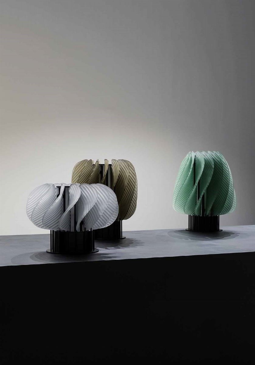 Horah reflects on the theme of light in dialog with one of the essential aspects of contemporary living: sociability. Inspired by Horah, the Israeli dance, London-based design duo Raw-Edges explore an ongoing theme of repetition with a lighting installation that is imbued with an essential quality in the dance: conviviality. Crafted and engineered by WonderGlass, each lamp features a pivoting motor with curving glass leaves attached, expertly composed using glass casting techniques. Light is concealed at the centre, creating a gradient of illumination. This kinetic lamp highlights how a coordinated rhythmic movement is powerfully captivating our attention.