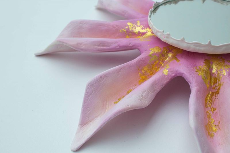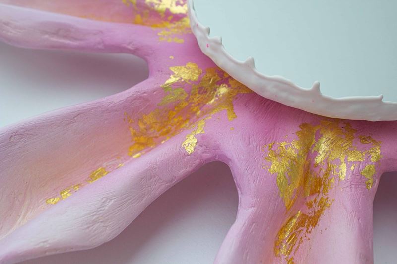 Hand-sculpted and covered with layers of makeup, this mirror not only contains the materiality of makeup but also the conno- tations it carries.