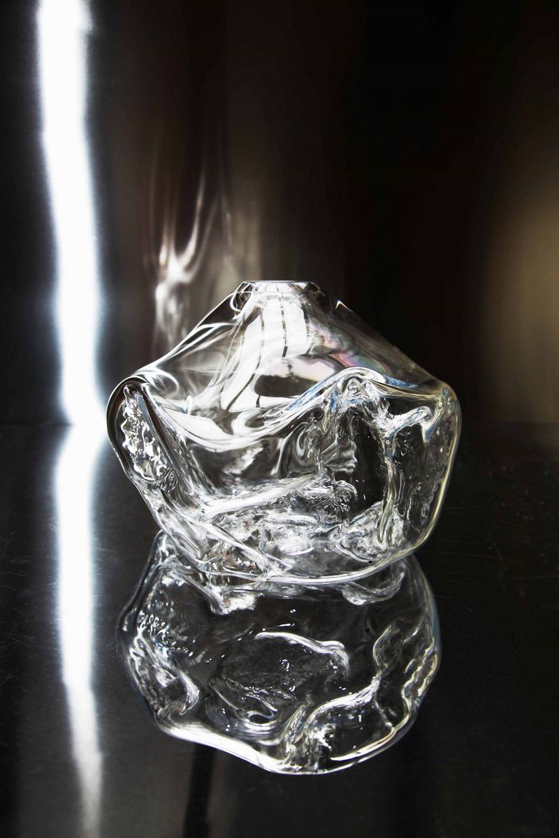 The shapes of the molten glass freely unfold in the space beyond the hand of the craftsman and the eye of the designer - Like a wild landscape: the material lives and evolves according to its environment.