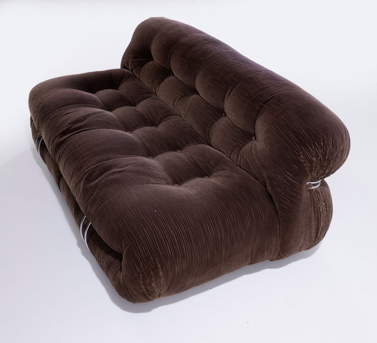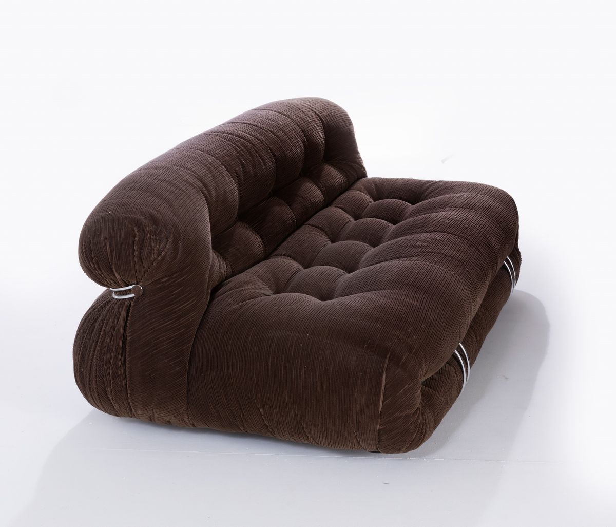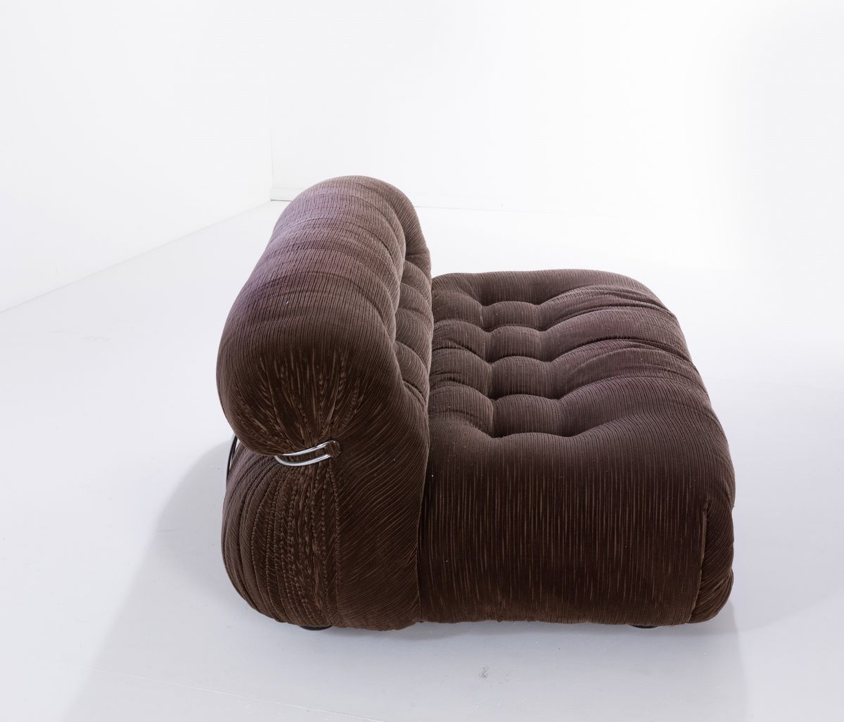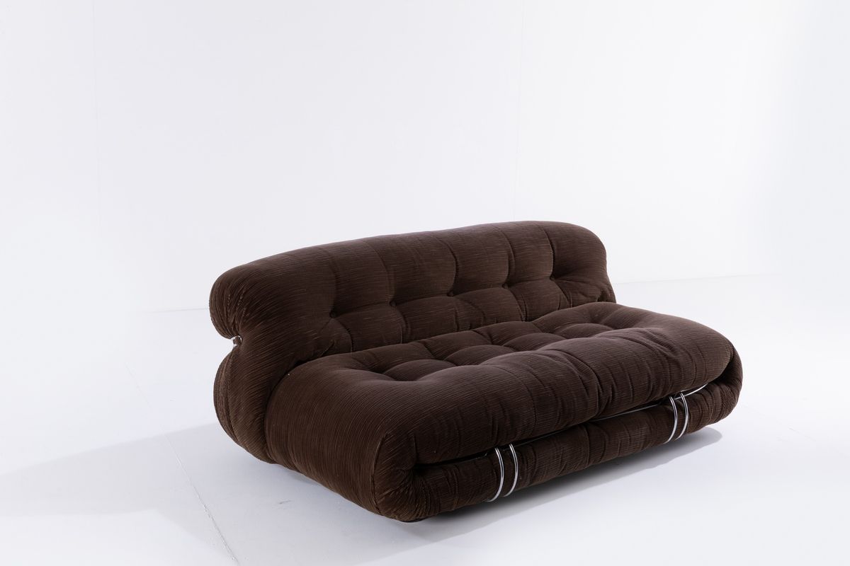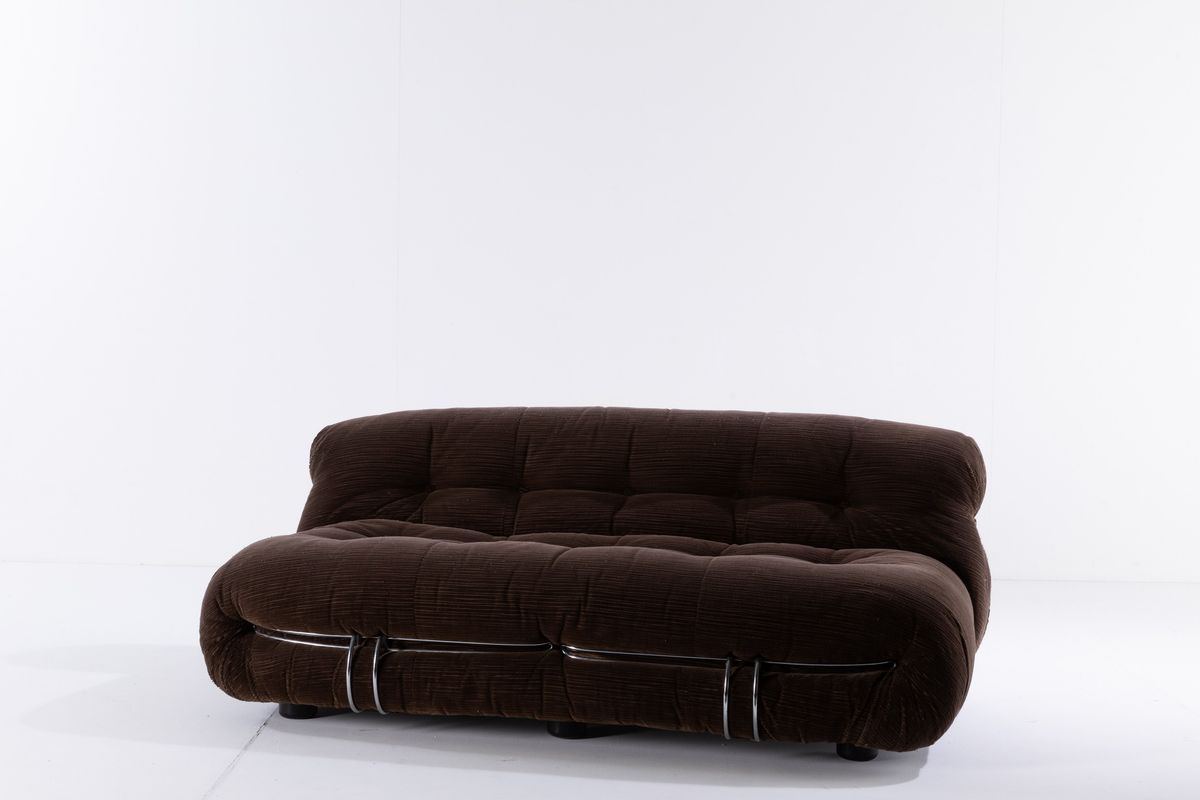 Coppia di divani mod. Soriana struttura in tubolare cromato e rivestimenti in tessuto. Disegno originale vincitore del Compasso D'oro nel 1969.