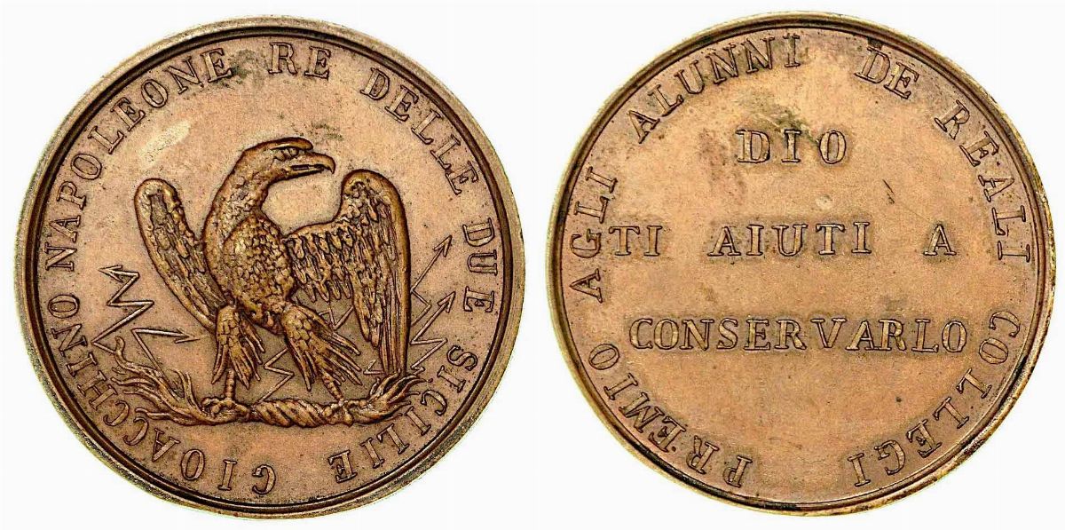GIOACCHINO MURAT, 1808-1815. PREMIO DEI COLLEGI REALI DI NAPOLI PER LE CLASSI SUPERIORI. Medaglia in bronzo 1809.