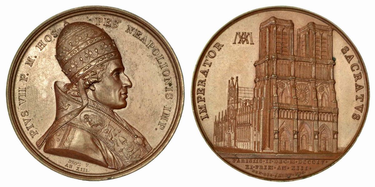 PIO VII CONSACRA NAPOLEONE IMPERATORE A PARIGI. Medaglia in bronzo anno XIII (1804).