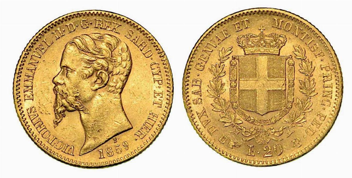 REGNO DI SARDEGNA. Vittorio Emanuele II di Savoia, 1849-1861. 20 Lire 1859, zecca di Torino.