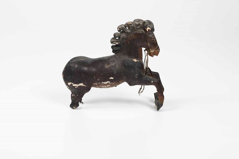 Cavallo da presepe in legno intagliato e dipinto, XVIII-XIX secolo
