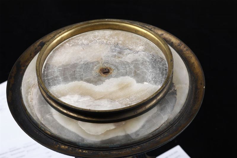 Centrotavola in bronzo, smalti champlevè e onice. Francia ultimo quarto del XIX secolo