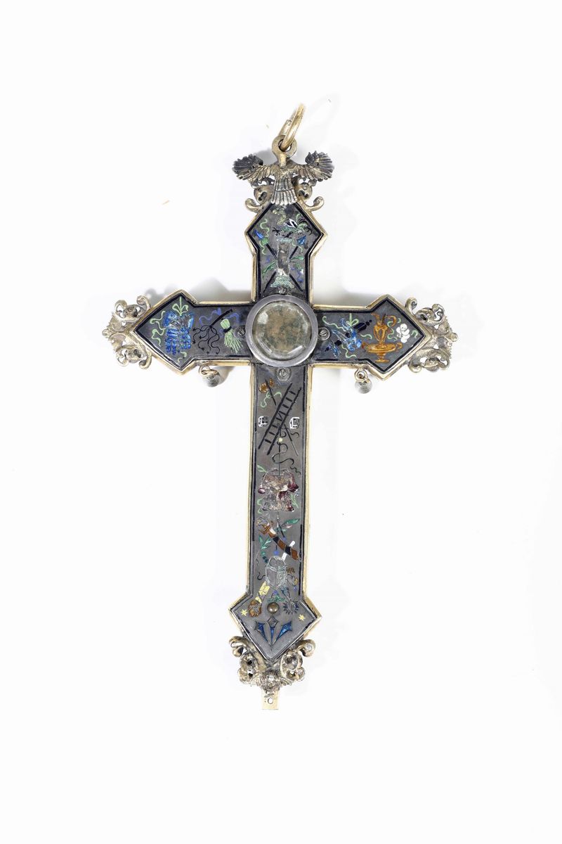 Croce pettorale Bronzo e argento fuso e cesellato Smalti policromi e vetri sfaccettati e colorati Oreficeria del XVIII [..]