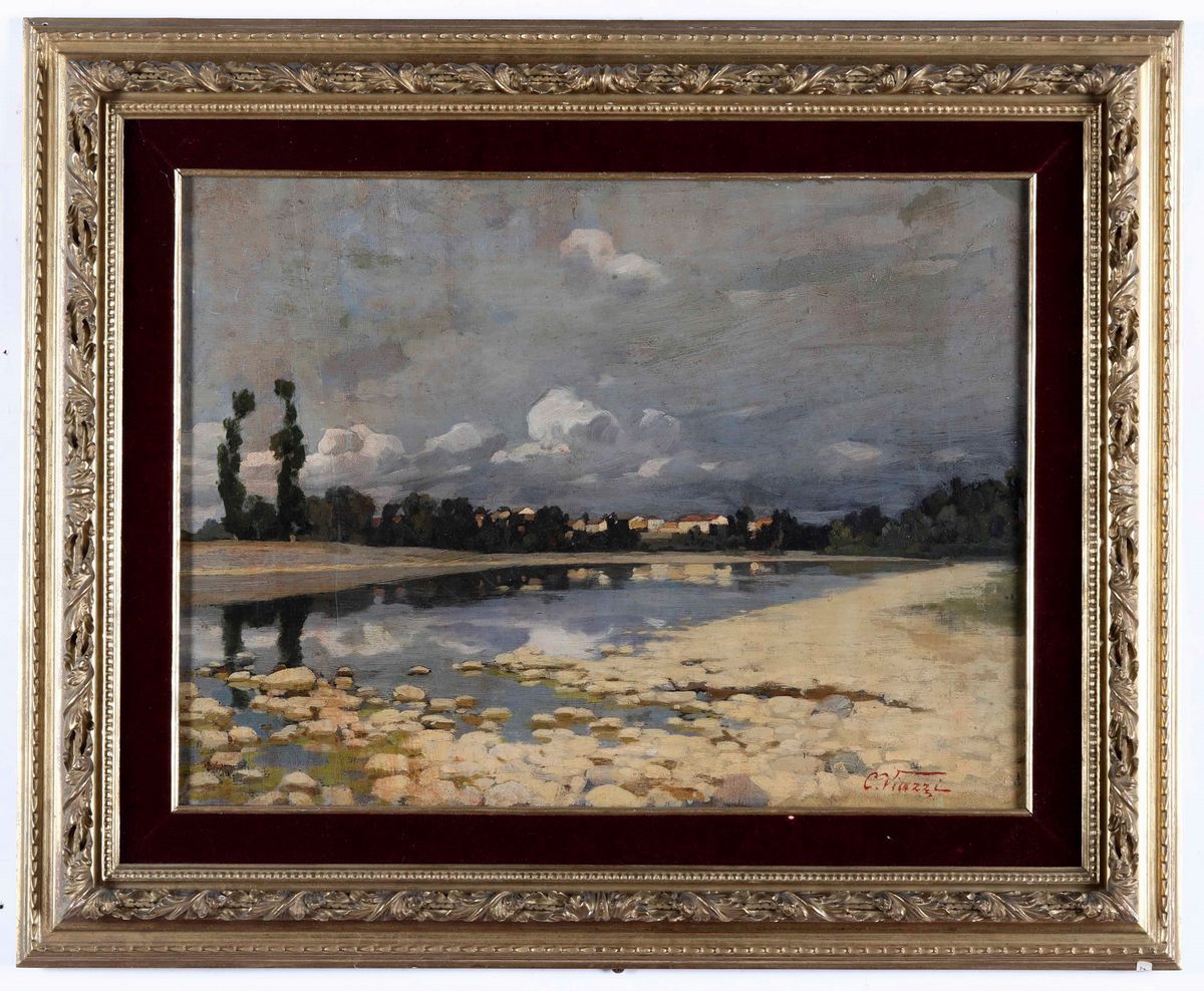 Cesare Viazzi (1857 - 1943) Paese sul fiume, 1885-1889