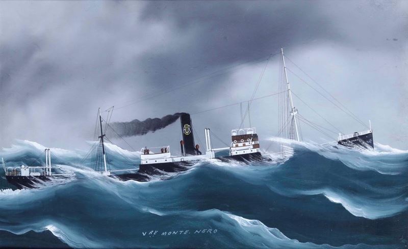 Scuola italiana, inizio sec. XX Ritratto della m/n Monte Nero durante la tempesta Ritratto della m/n Monte Nero in naviga [..]