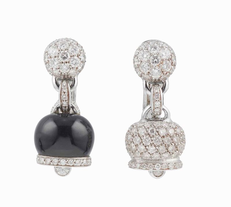 Faraone. Orecchini con diamanti e morganiti Chantecler. Orecchini con diamanti ed onice