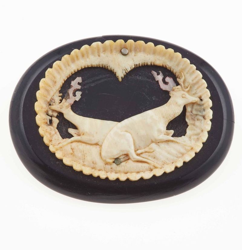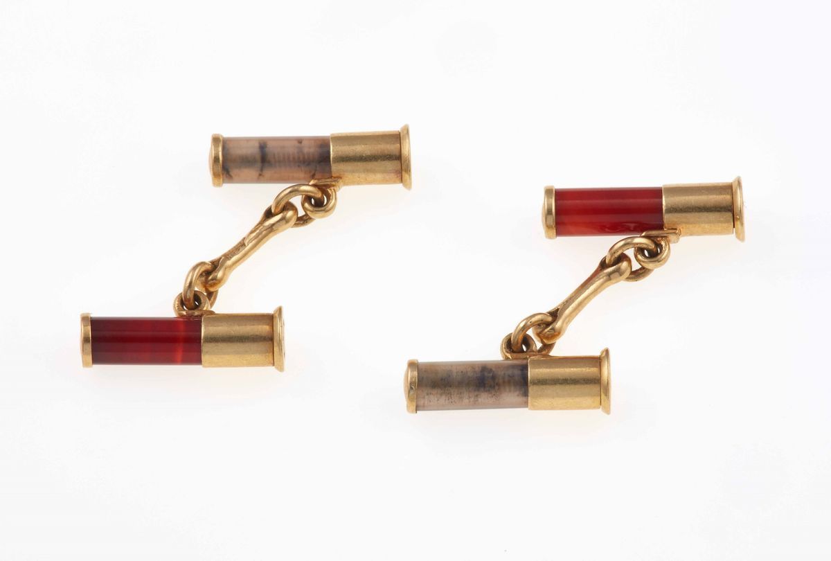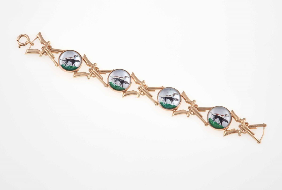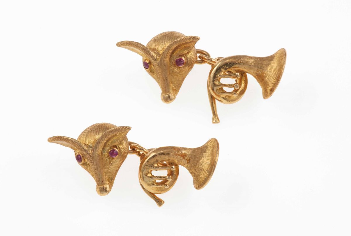 Piccola collezione di gioielli da caccia comprendente un bracciale, una spilla, tre paia di bottoni da polso ed una spilla [..]