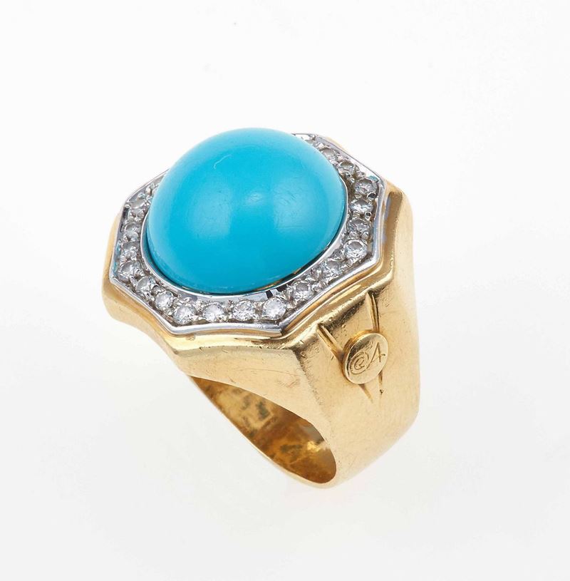 Anello con turchese e piccoli diamanti