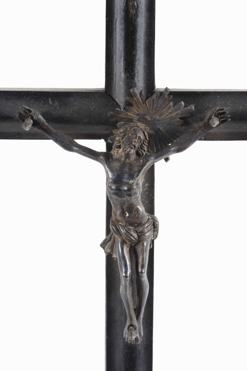 Croce e base in legno ebanizzato. Altezza: cm. 66