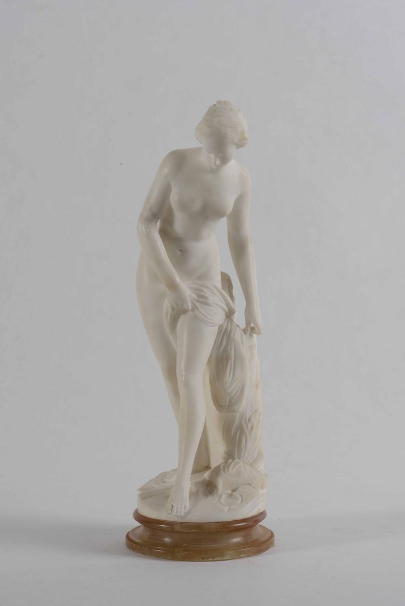 scultura in marmo bianco su base in alabastro, altezza cm 45
