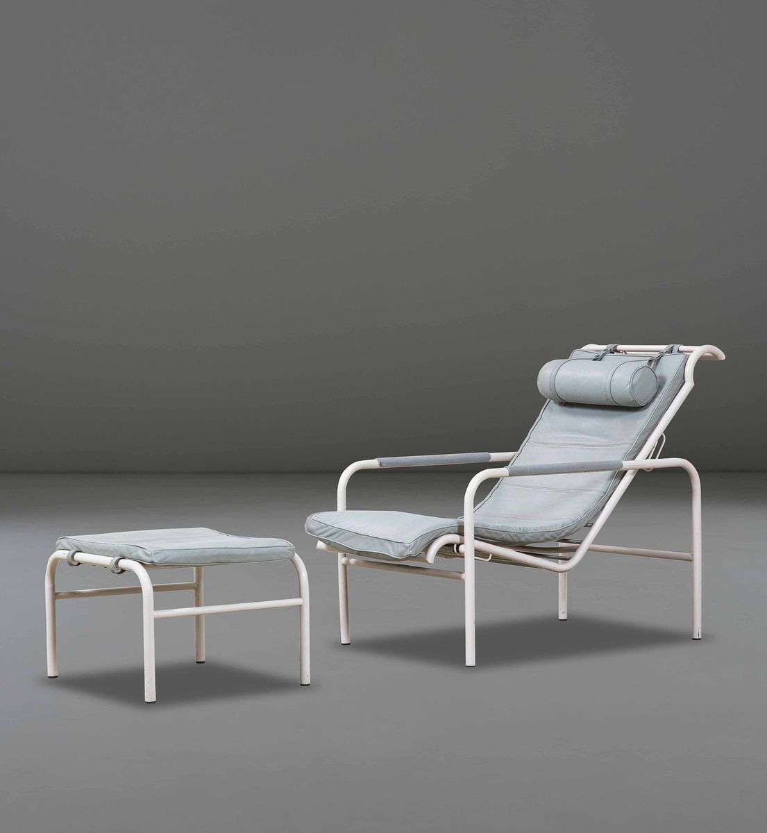 Chaise Longue mod. Genni in metallo tubulare laccato e rivestimento in pelle.
